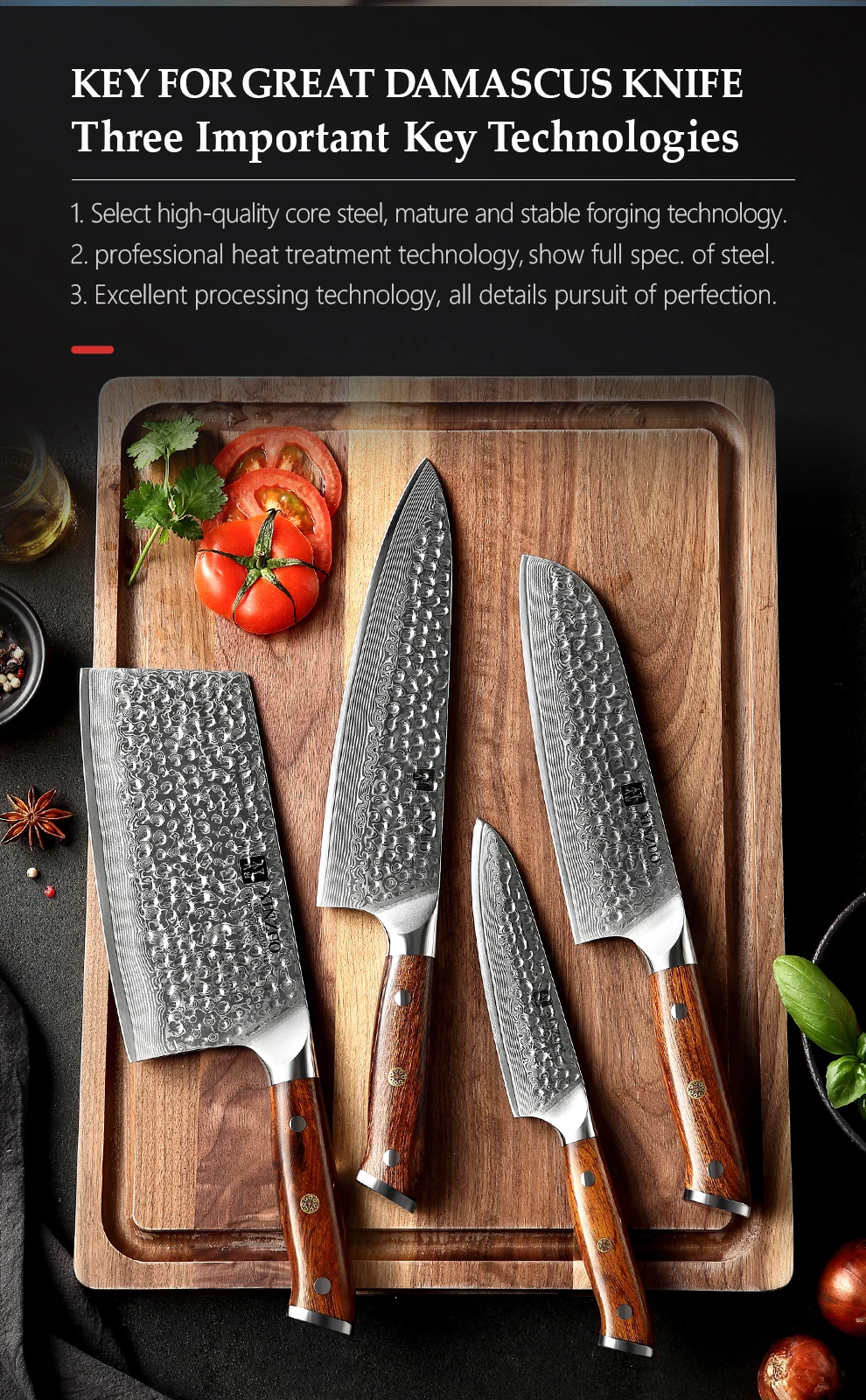 Набор ножей XINZUO VG10 из высокоуглеродистой дамасской стали с руч...