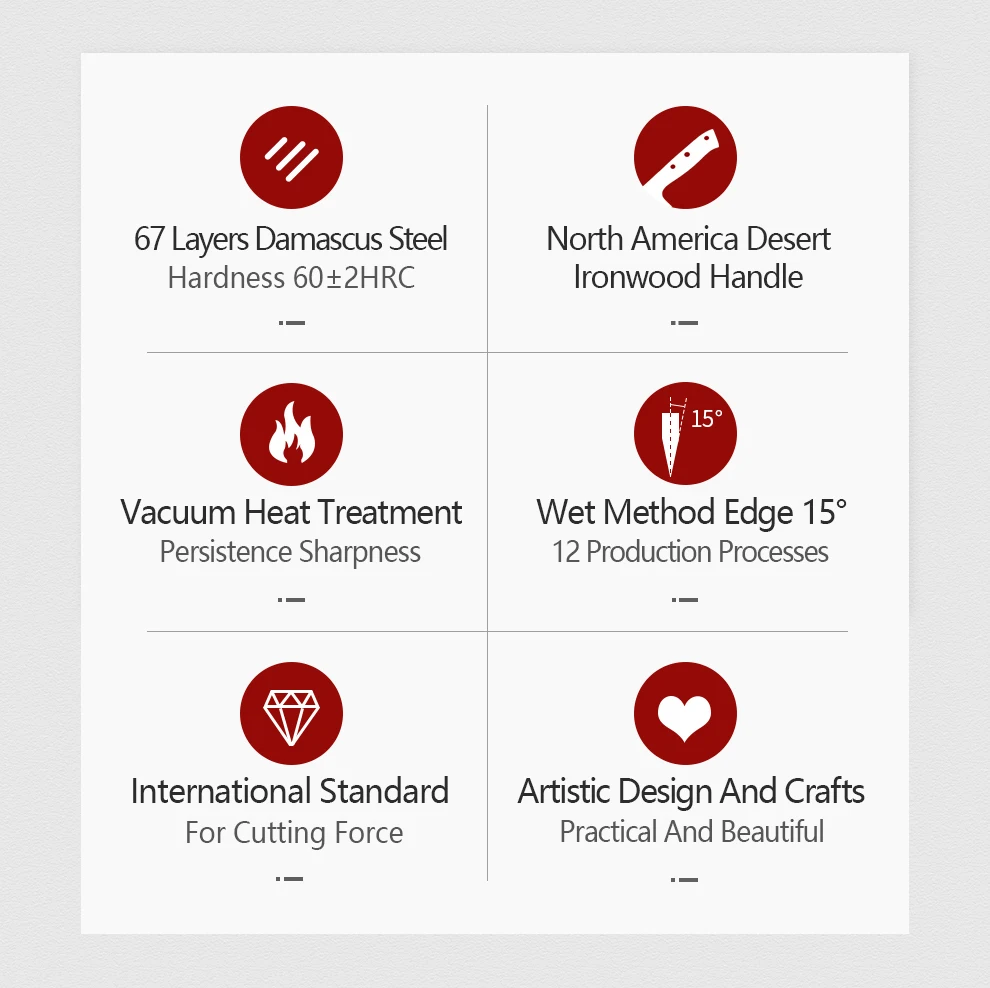 Нож шеф-повара из дамасской стали, 67 слоев, 8,2 дюйма