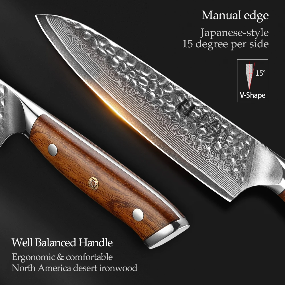Нож шеф-повара из дамасской нержавеющей стали, 67 слоев, 5 дюймов