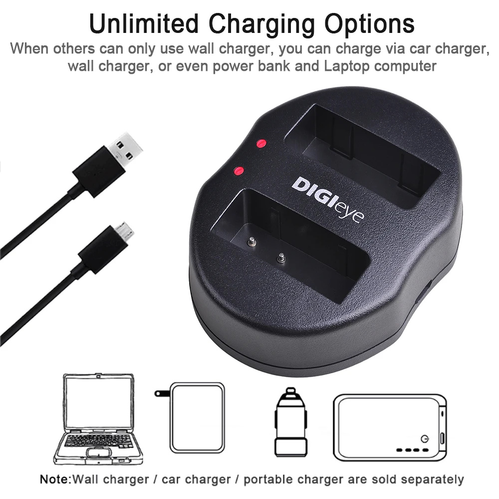 Благодаря входу micro-USB вы можете заряжать аккумулятор с помощью настенного зарядного устройства, автомобильного зарядного устройства и внешнего аккумулятора. Портативный размер зарядного устройства легко носить с собой во время путешествия, не нужно беспокоиться о коротком заряде