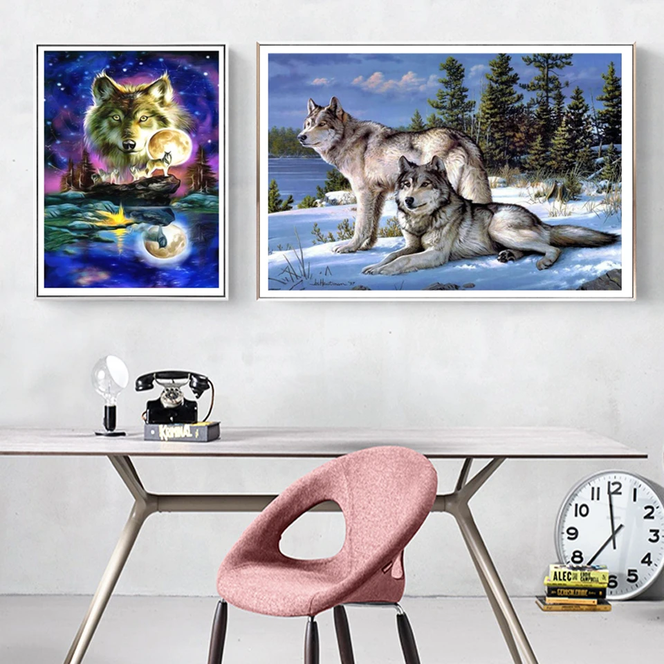 Алмазная живопись волк 5D сделай сам, Набор для вышивки стразами, полная выкладка, стразы, вышивка крестиком, мозаика для подарка