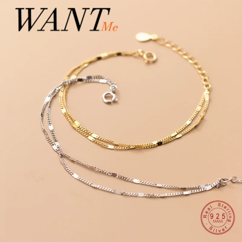 WANTME панк двойной кубинский геометрический звеньевой цепь браслет с шармами для женщин Настоящее серебро 925 пробы хип-хоп ювелирные изделия унисекс