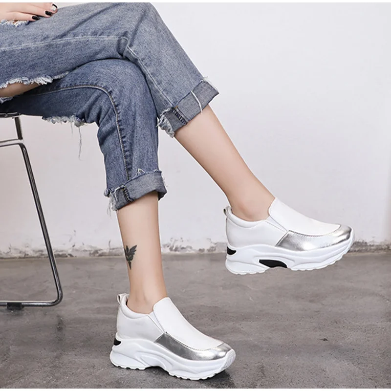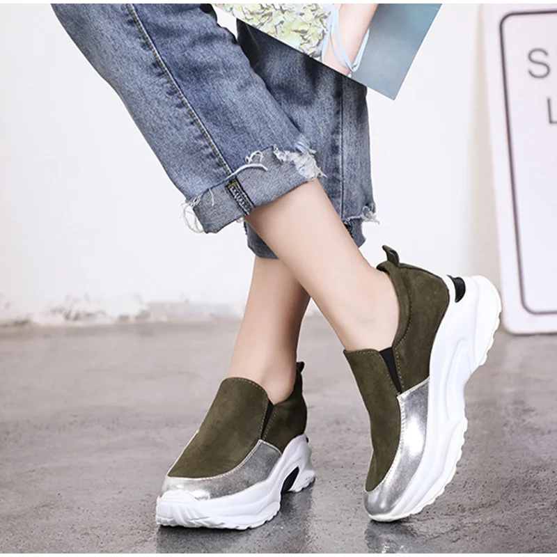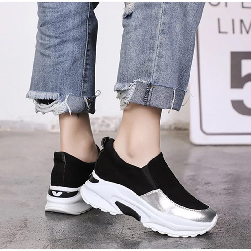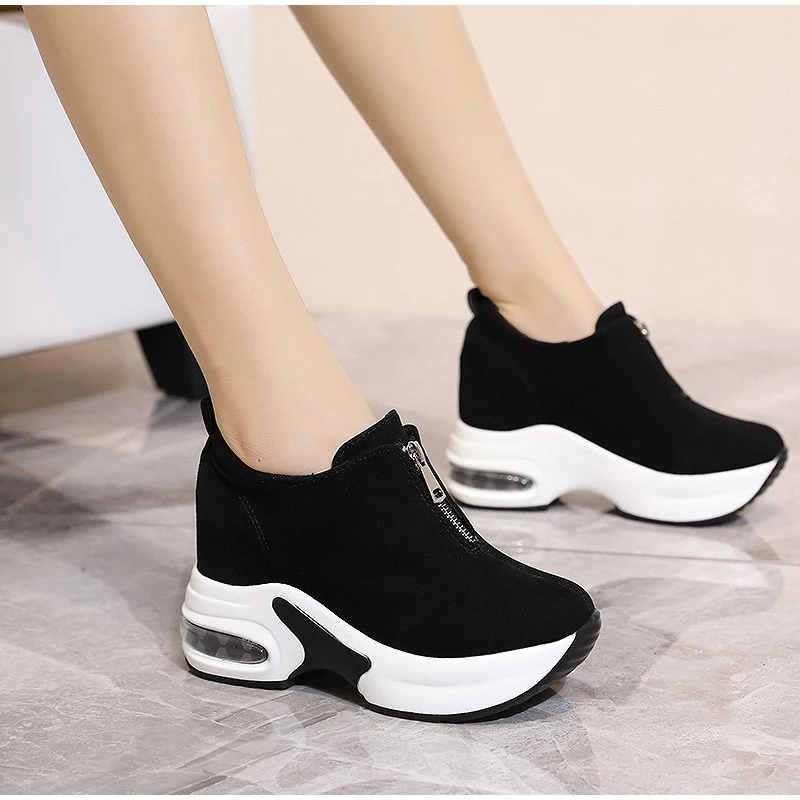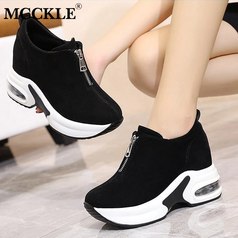Кроссовки MCCKLE женские на толстой подошве, Вулканизированная подошва, на молнии, высокий каблук, из флока, 2021