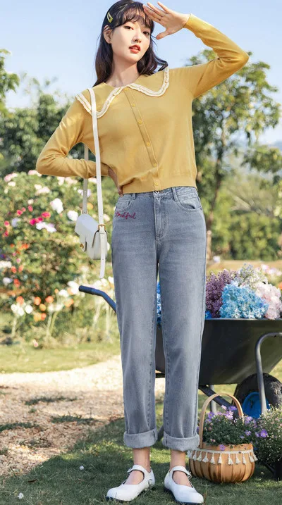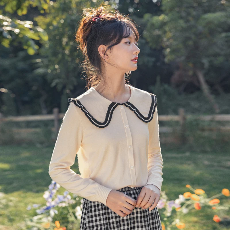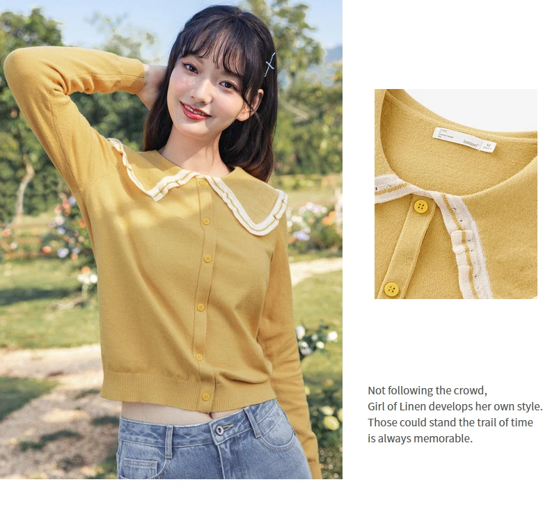 INMAN, весна 2021, Новое поступление, Детский свитер с воротником, новое милое универсальное Женское пальто для молодых девушек