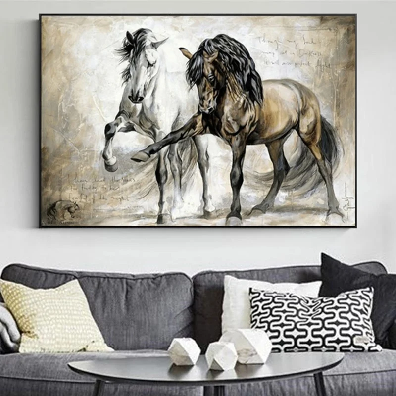 Абстрактная винтажная картина маслом с изображением двух лошадей, настенный художественный плакат и принт, картины с животными для гостиной, домашний декор