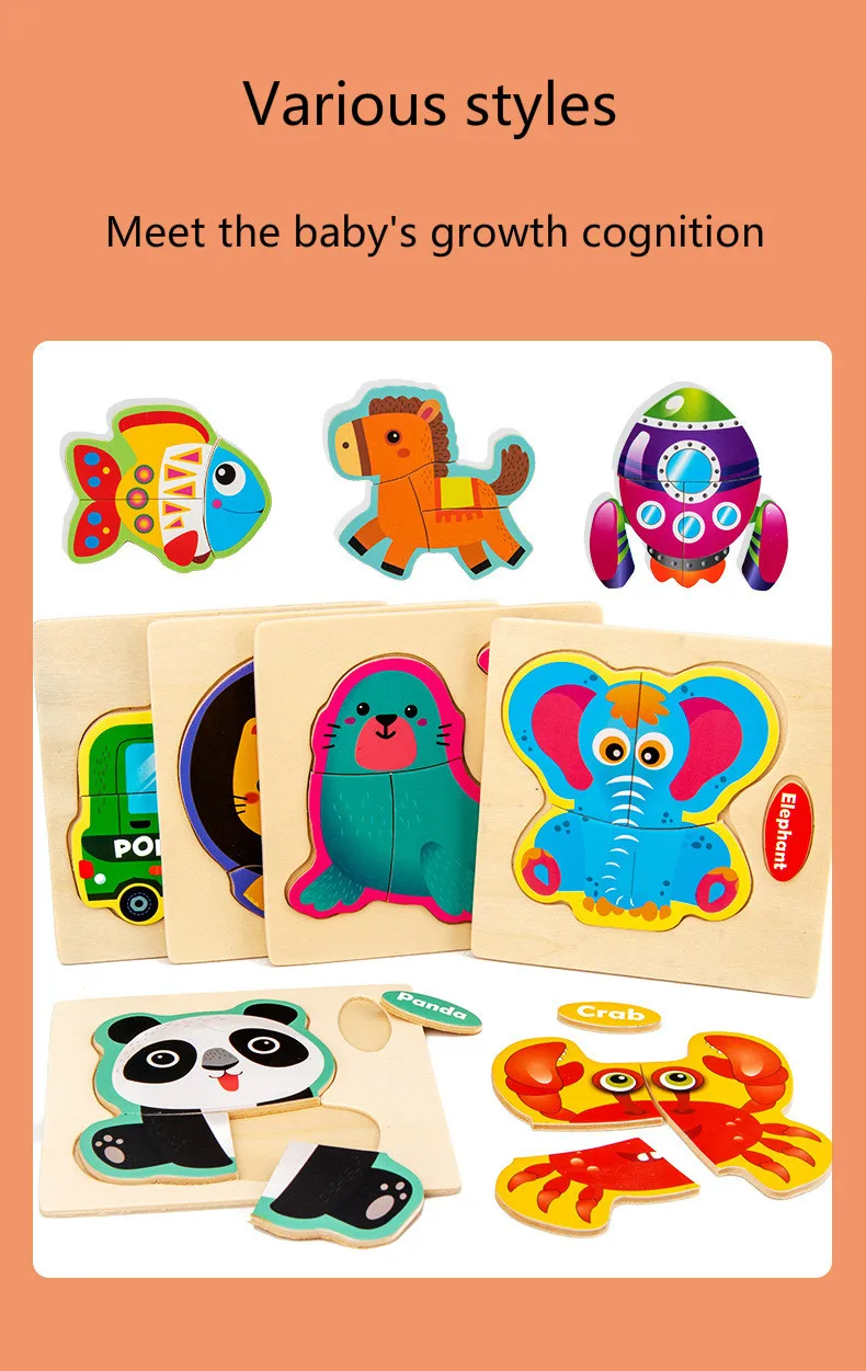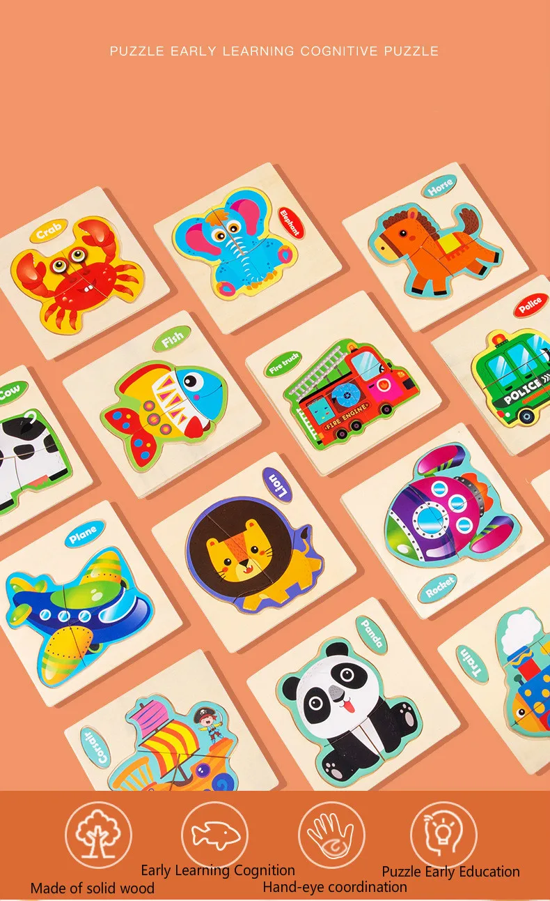 Детские деревянные игрушки, Интеллектуальные 3D пазлы, Мультяшные ж...