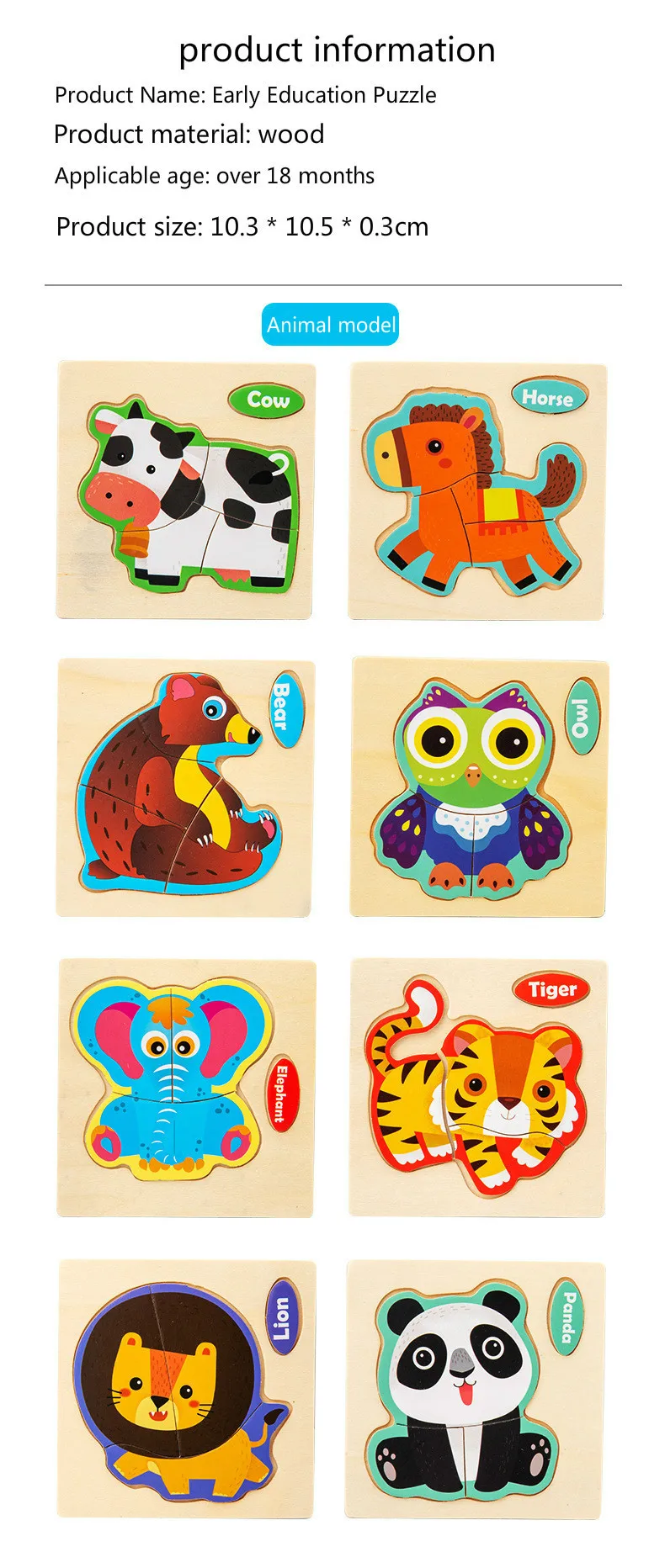 Детские игрушки, Деревянный 3d пазл, Мультяшные животные, интеллектуальные детские головоломки, Детские танграммы, Обучающие головоломки