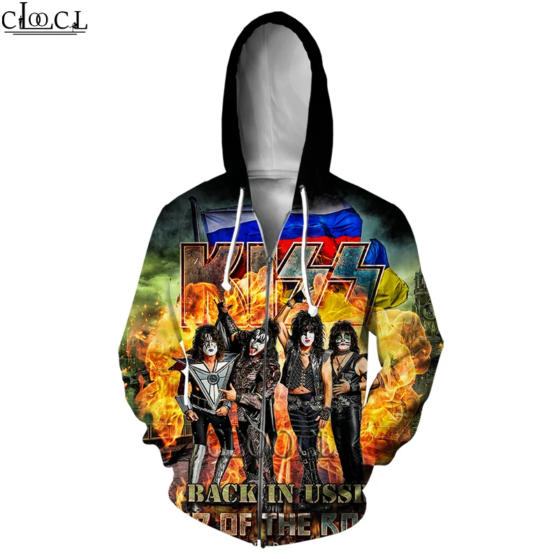 Худи HX на молнии для мужчин и женщин, уличная одежда с 3D-принтом рок Kiss Band, популярный пуловер унисекс в стиле хип-хоп, Харадзюку на молнии, топы