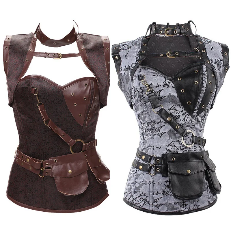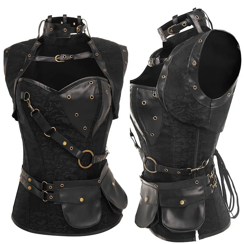 Кожаный корсет, корсет в стиле стимпанк, женская верхняя одежда в стиле стимпанк