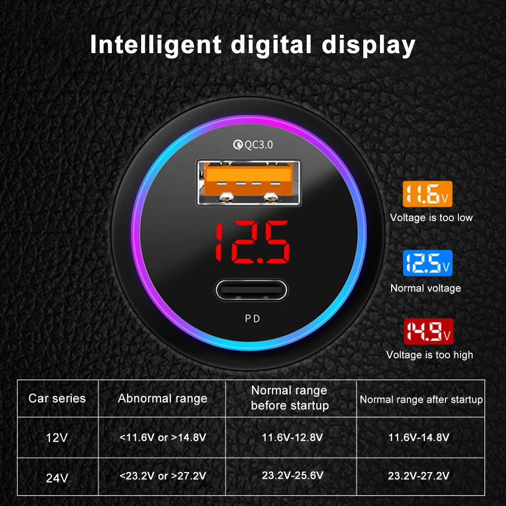 Автомобильное зарядное устройство USB мини ЖК-дисплей 3,0 Quick Charge 6A 36 Вт Быстрая зарядка для iPhone 12 Huawei Xiaomi Тип C мобильный телефон