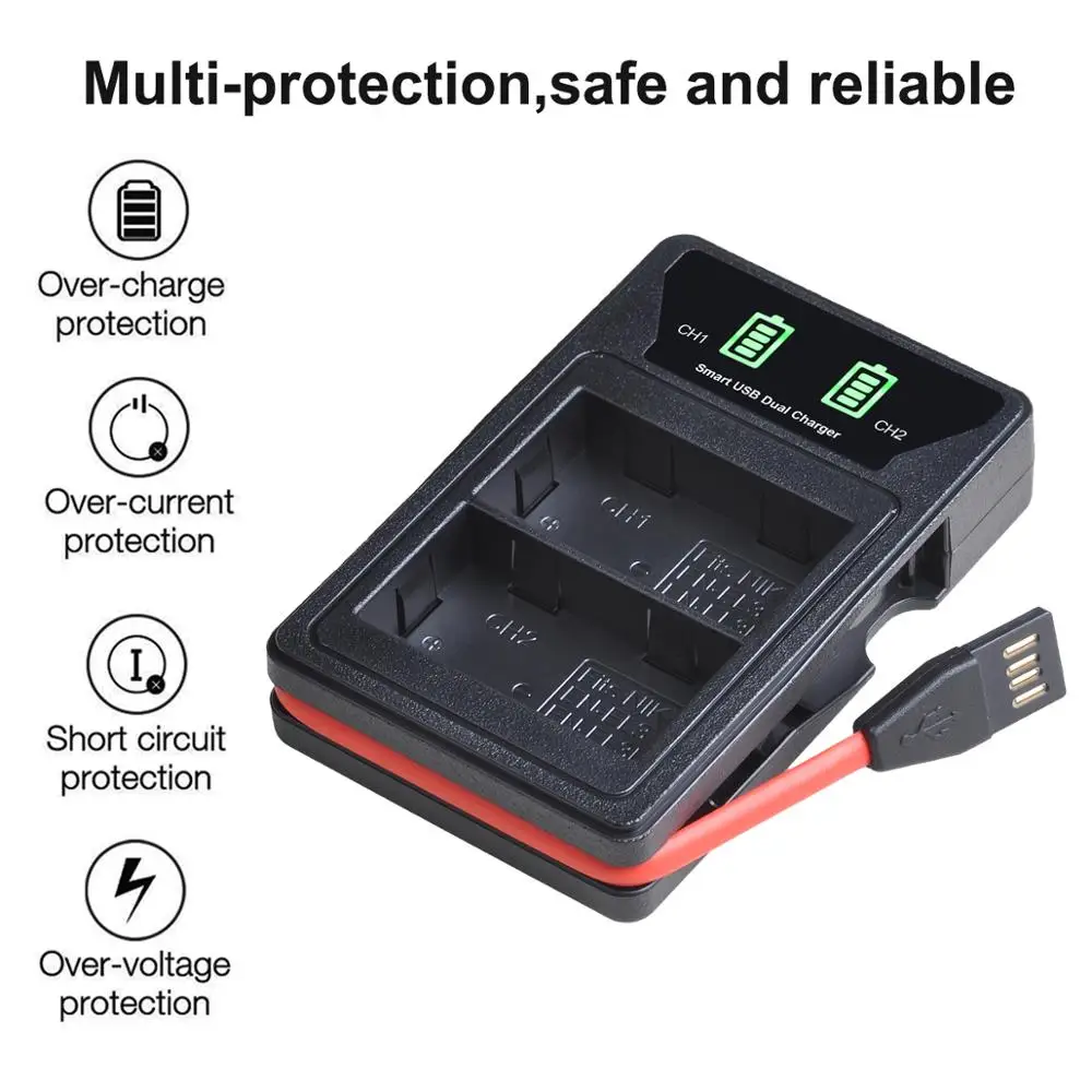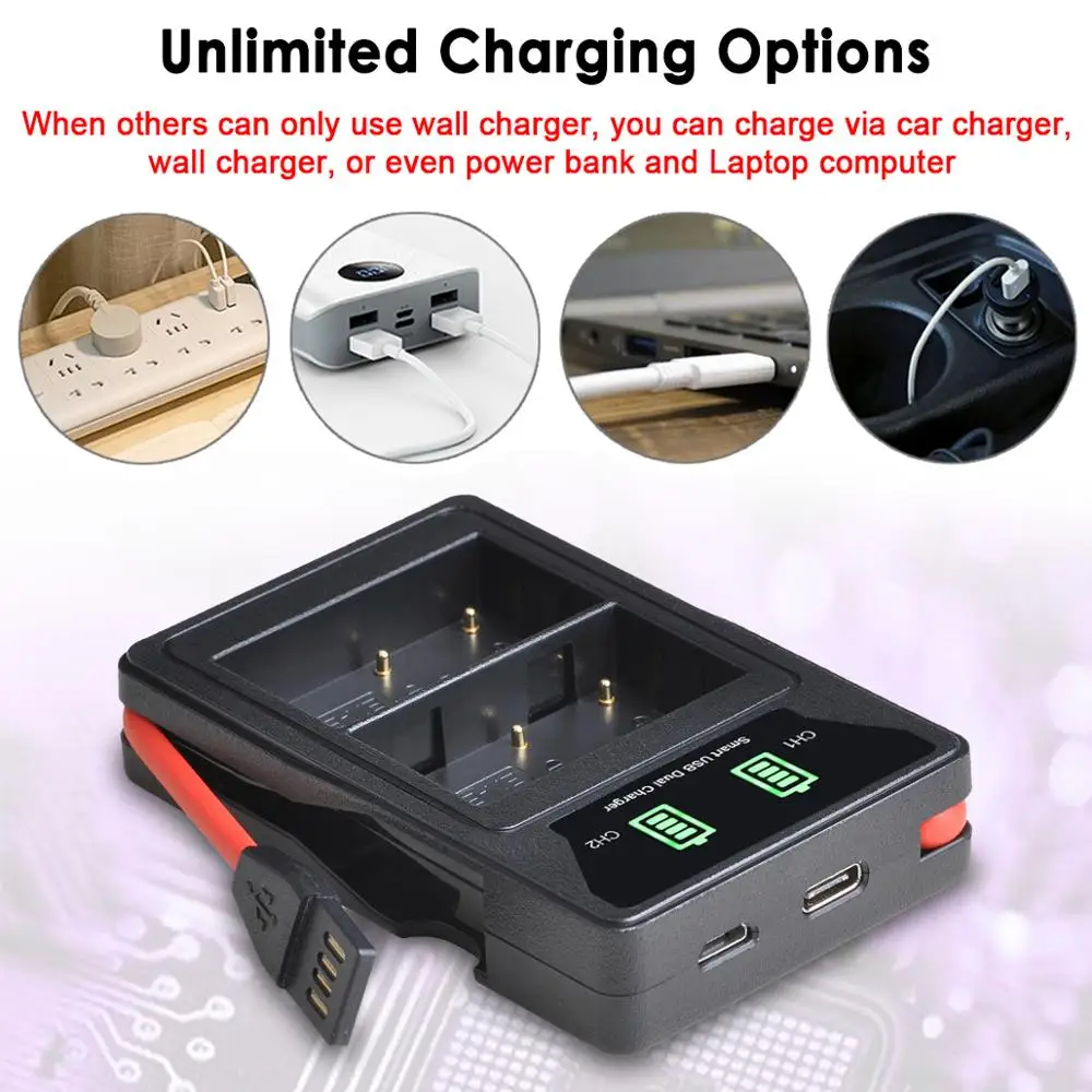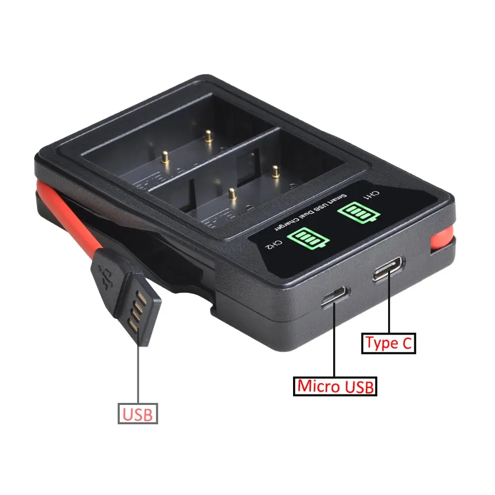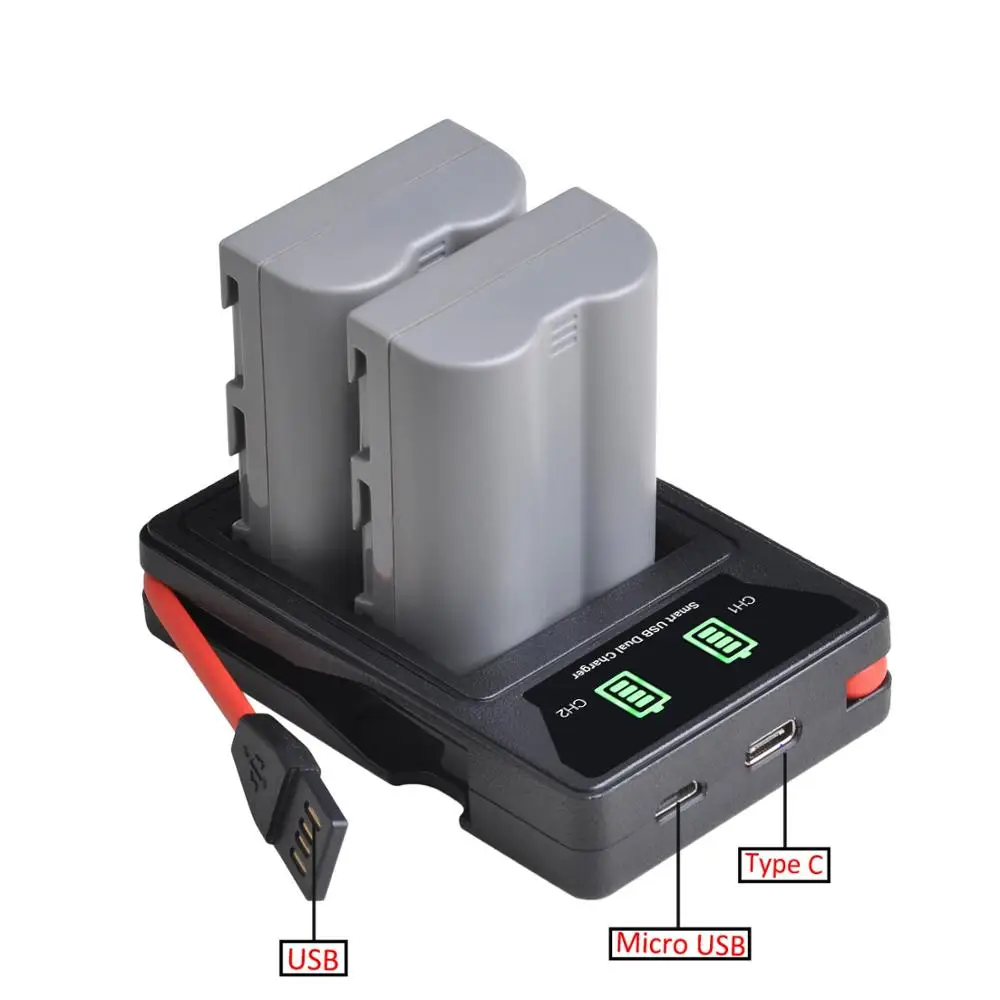 Аккумулятор 2000 мАч EN-EL3e + двойное зарядное устройство USB с портом type-C
