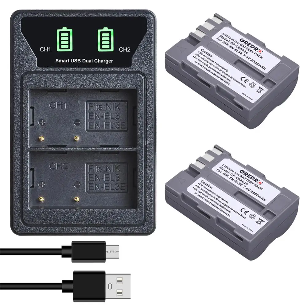 Аккумулятор 2000 мА ч EN-EL3e EN EL3e ENEL3e + зарядное устройство EN EL3 с портом Type-c для Nikon D30, D50, D70, D70S, D90, D80, D100, D200, D300, D700