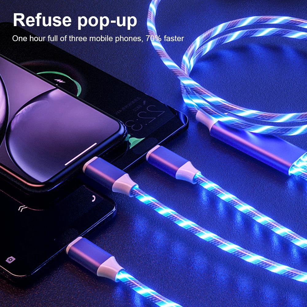 Зарядный кабель 3 в 1, со светодиодной подсветкой, Micro USB, Type C, для Iphone 12, 11pro, Huawei Honor 9X, Xiaomi Redmi Note 55A, автомобильный зарядный кабель