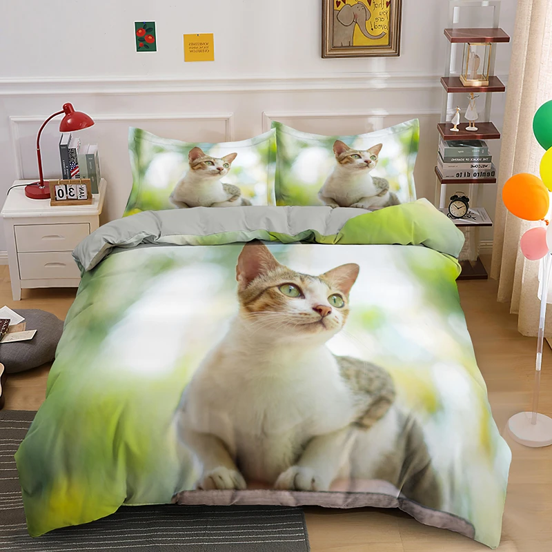Комплект постельного белья с лежащим котом, мягкая ткань, пододеяльник, покрывало с котенком, King, Queen, Двуспальная, односпальная, удобная кровать