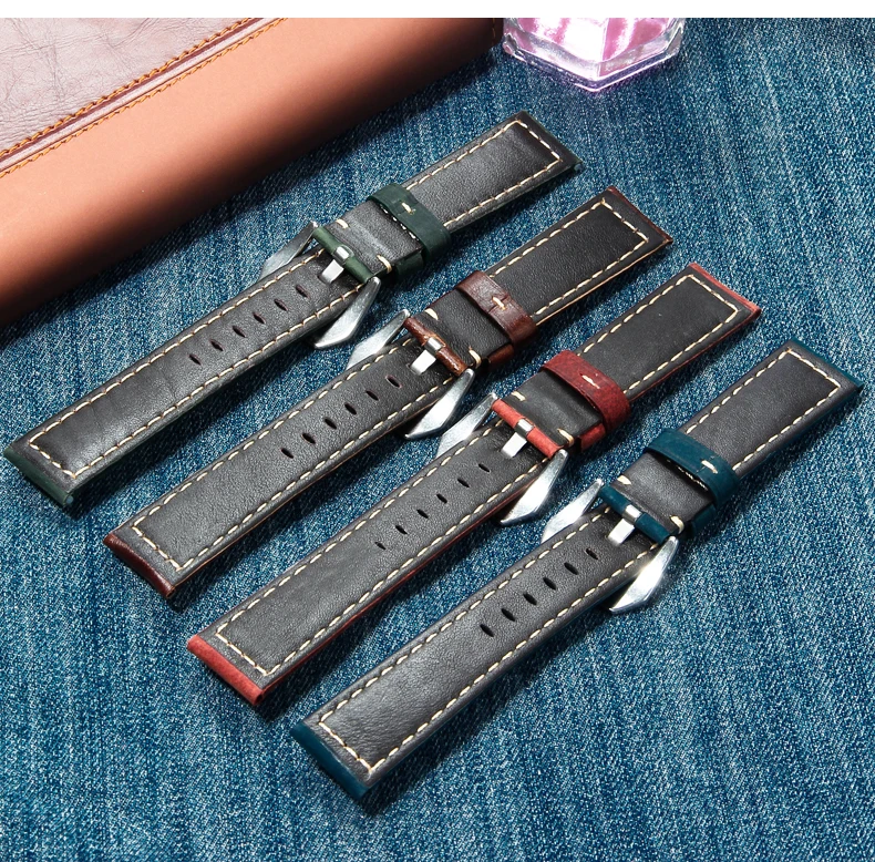 Ремешок для часов SEAFARER 22 мм 24 мм, винтажный браслет из воловьей кожи для часов Panerai Fossil