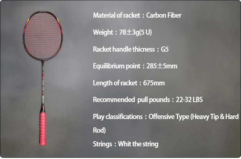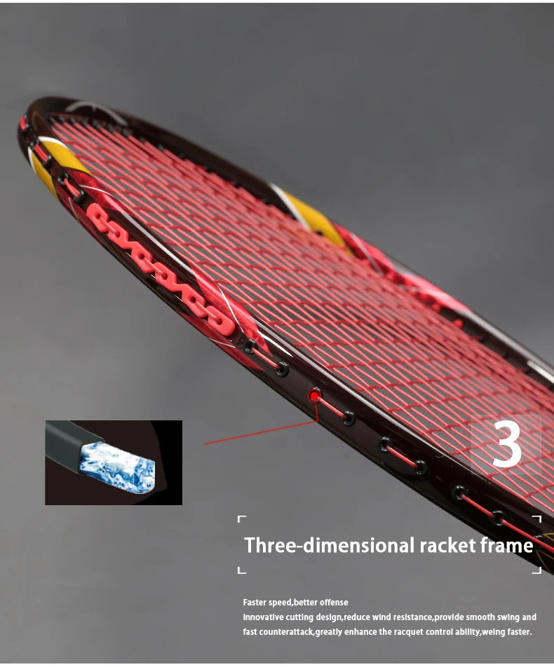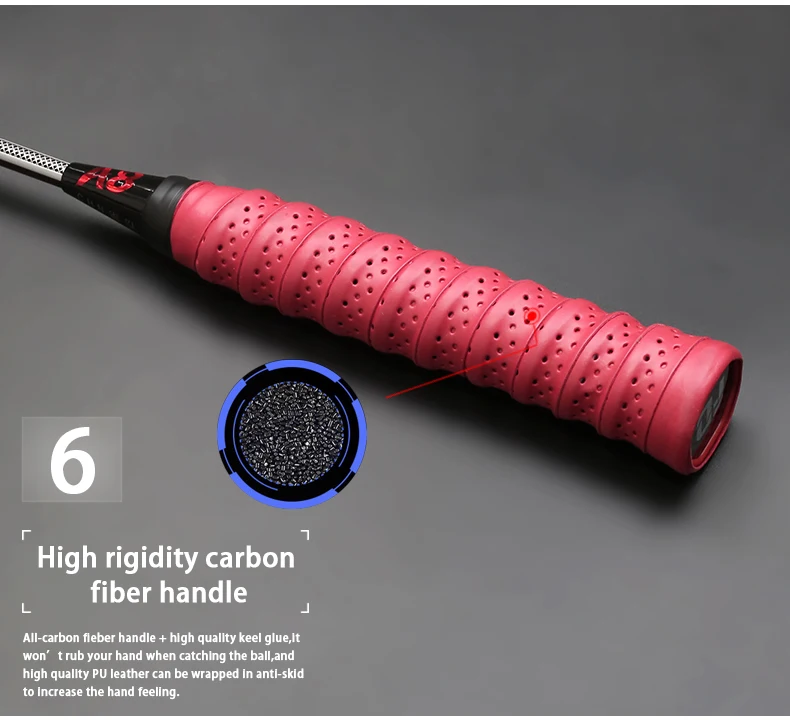 Углеродное волокно-он ракетка более легкая, но более сильная, поэтому напряжение может достигать 32 фунтов, подходит для начинающих и профессиональных игроков;