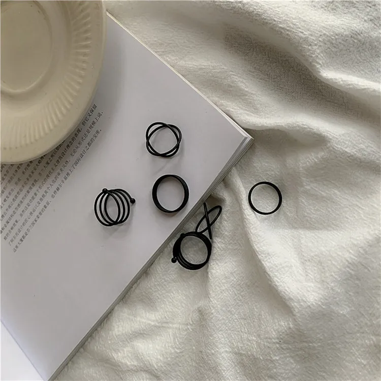 Оригинальный женский набор колец черного цвета с геометрическим рисунком, модное женское кольцо с перекрестными вставками, ювелирные изделия 2022