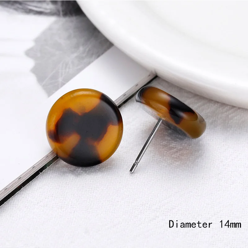 Лидер продаж, акриловые леопардовые геометрические серьги, женские винтажные маленькие серьги-гвоздики из ацетата разной формы, эффектные модные украшения, 2021