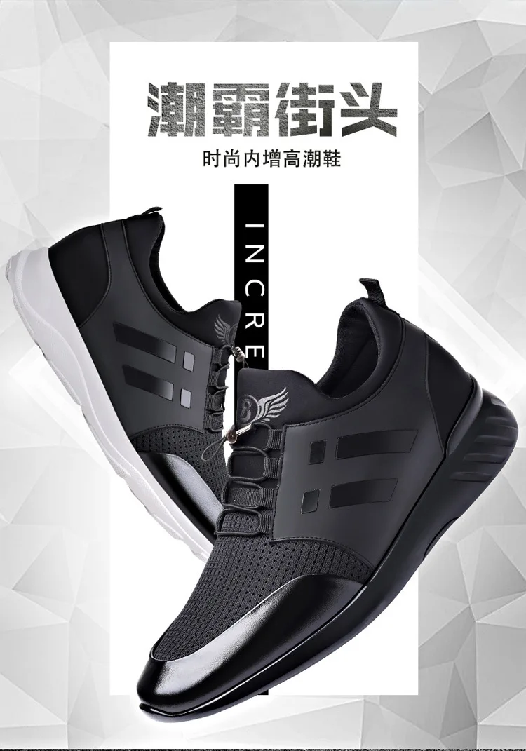 Новинка 2022 года; Сезон осень-зима; Мужская повседневная обувь; Кроссовки из лайкры и коровьей кожи; Обувь, увеличивающая рост на 6 см; Британский светильник на плоской подошве; Обувь для путешествий