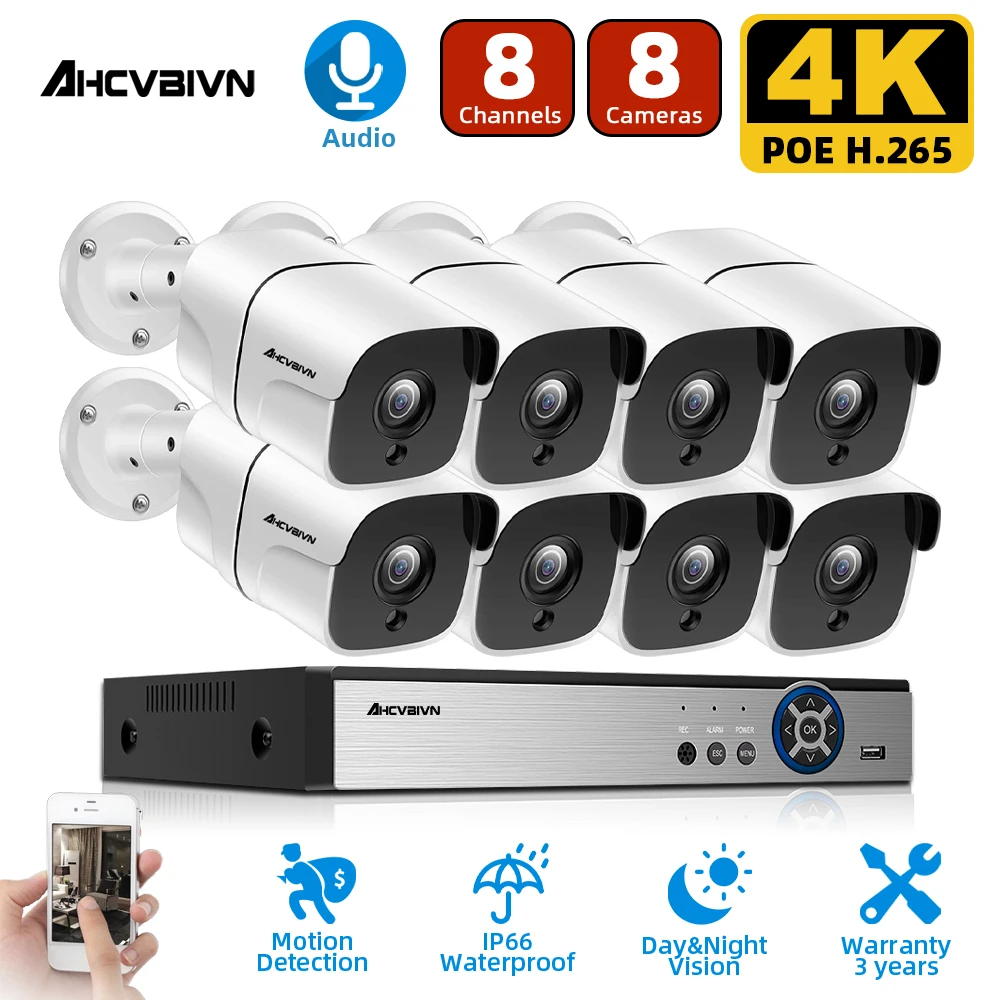 8CH 4K Ultra HD система видеонаблюдения H.265 + комплект видеонаблюдения 8MP NVR наружная домашняя водонепроницаемая система видеонаблюдения Poe Nvr