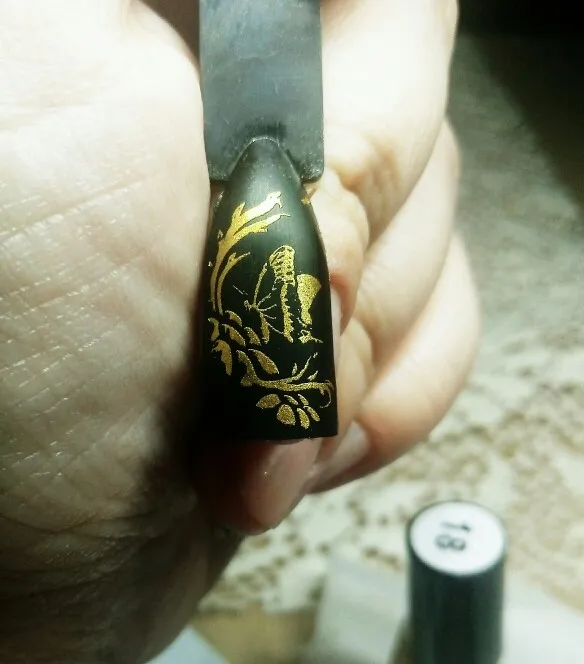 Доставка очень быстрая. До нижегородской области за 2 недели. Пробовала лак для стемпинга(золото), кстати серебро никак не работает. Работают жидкие лаки, с очень мелкими блестками (розоватый - обычный лак РубиРоуз сработал на 5+ на всех трафаретах), попробовала и сухой пигмент кошачий глаз (сиреневый). Тоже хорошо получается. Однвзначно, за такие деньги стоит брать!!! Большое спасибо продавцу!!!