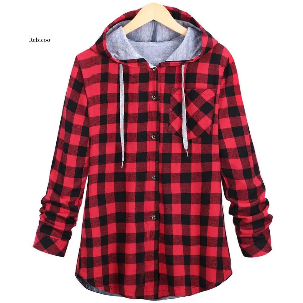 Зимняя женская одежда, Женское пальто, женская клетчатая блузка с длинным рукавом