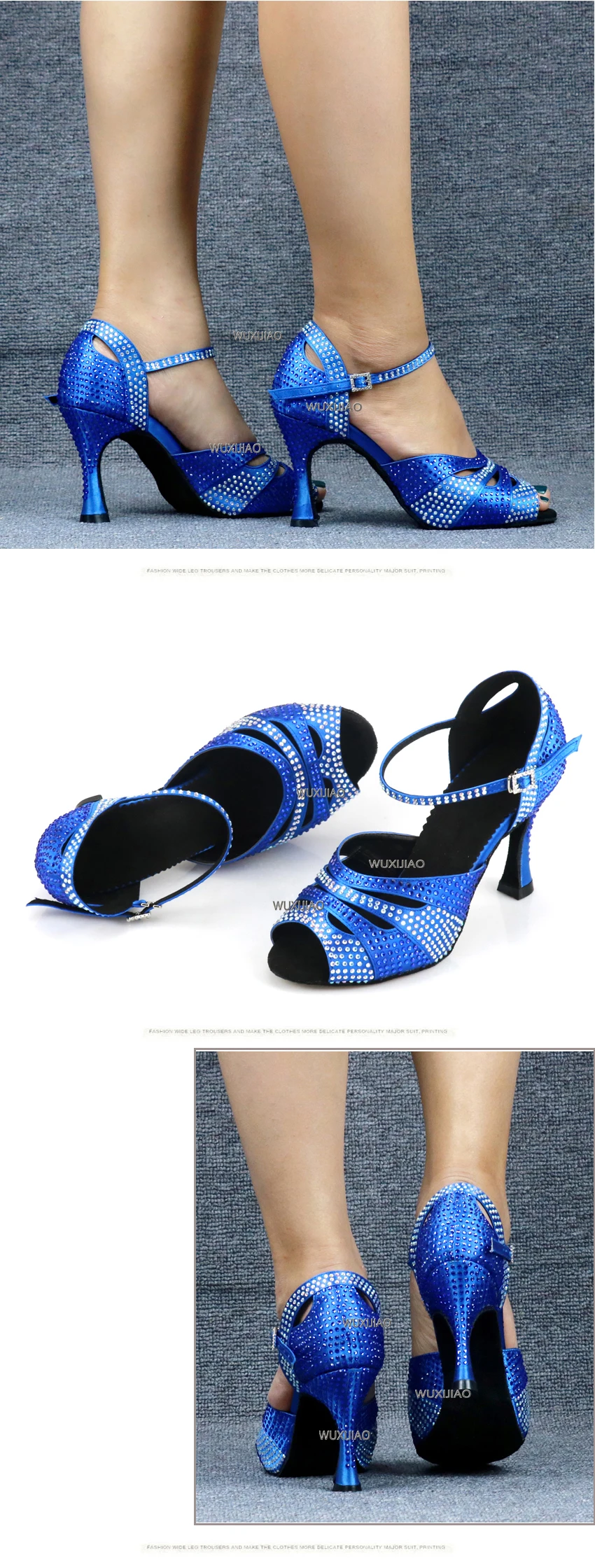 WUXIJIAO Для женщин Туфли для латинских танцев Новинка; Танцевальная обувь; Уникальный дизайн Сальса обувь сандалии со стразами