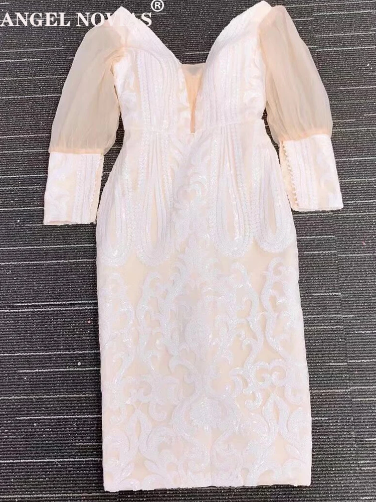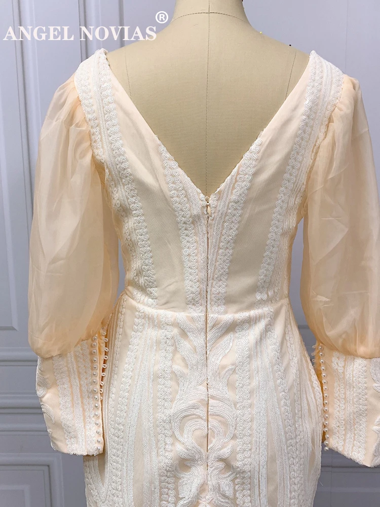 Женское вечернее платье ANGEL NOVIAS, кружевное платье цвета шампанского с длинным рукавом и V-образным вырезом, длинное платье на лето 2022