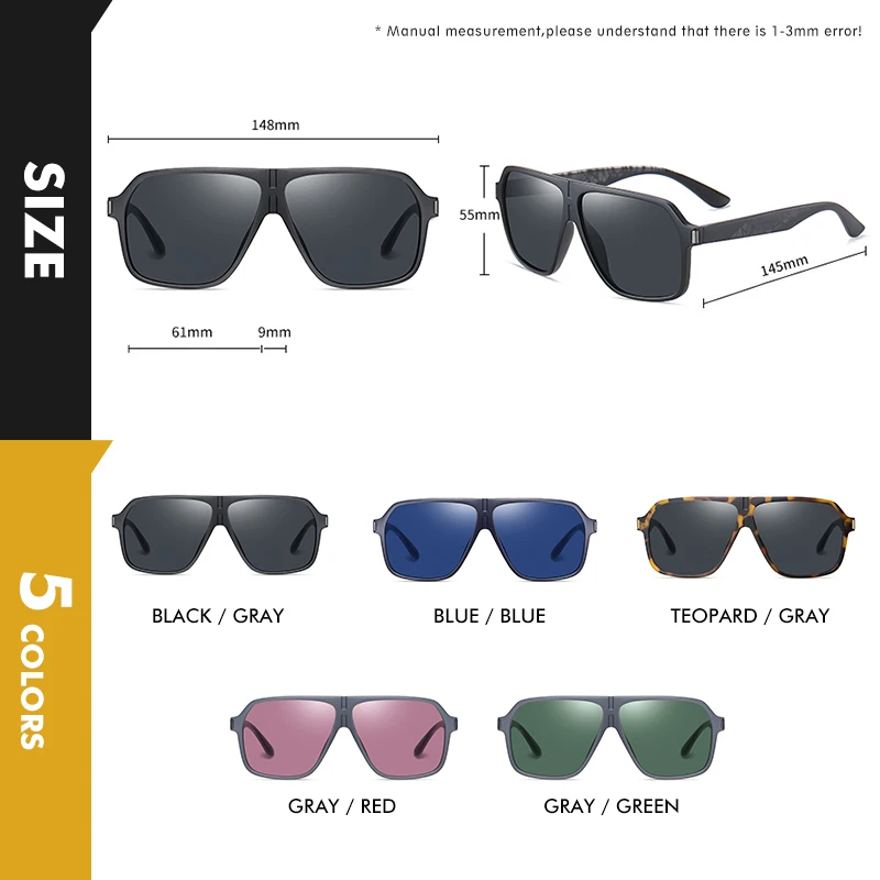Мужские и женские квадратные поляризованные солнцезащитные очки LIO...