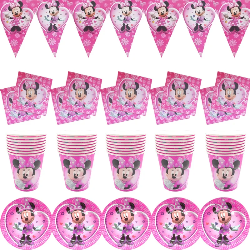 Disney Минни Мышь вечерние Тема Бумажный Декор платье для маленьких девочек, платье для дня рождения или для похода на одноразовая посуда или набор воздушных шариков с сцены Коллекция декор