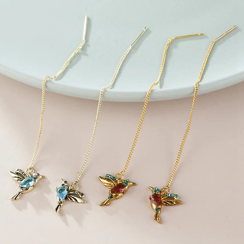 Уникальные длинные висячие серьги, подвеска в виде птицы, кисточки, Кристальные Подвесные серьги, Женские Ювелирные изделия, дизайн