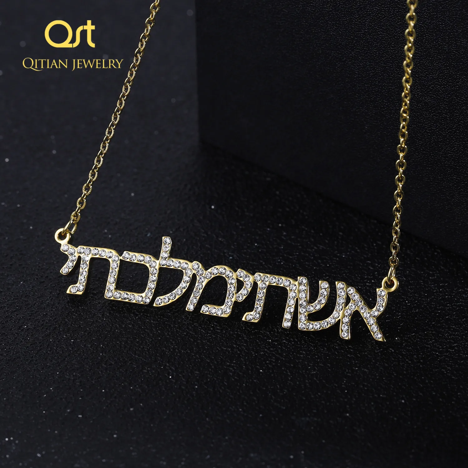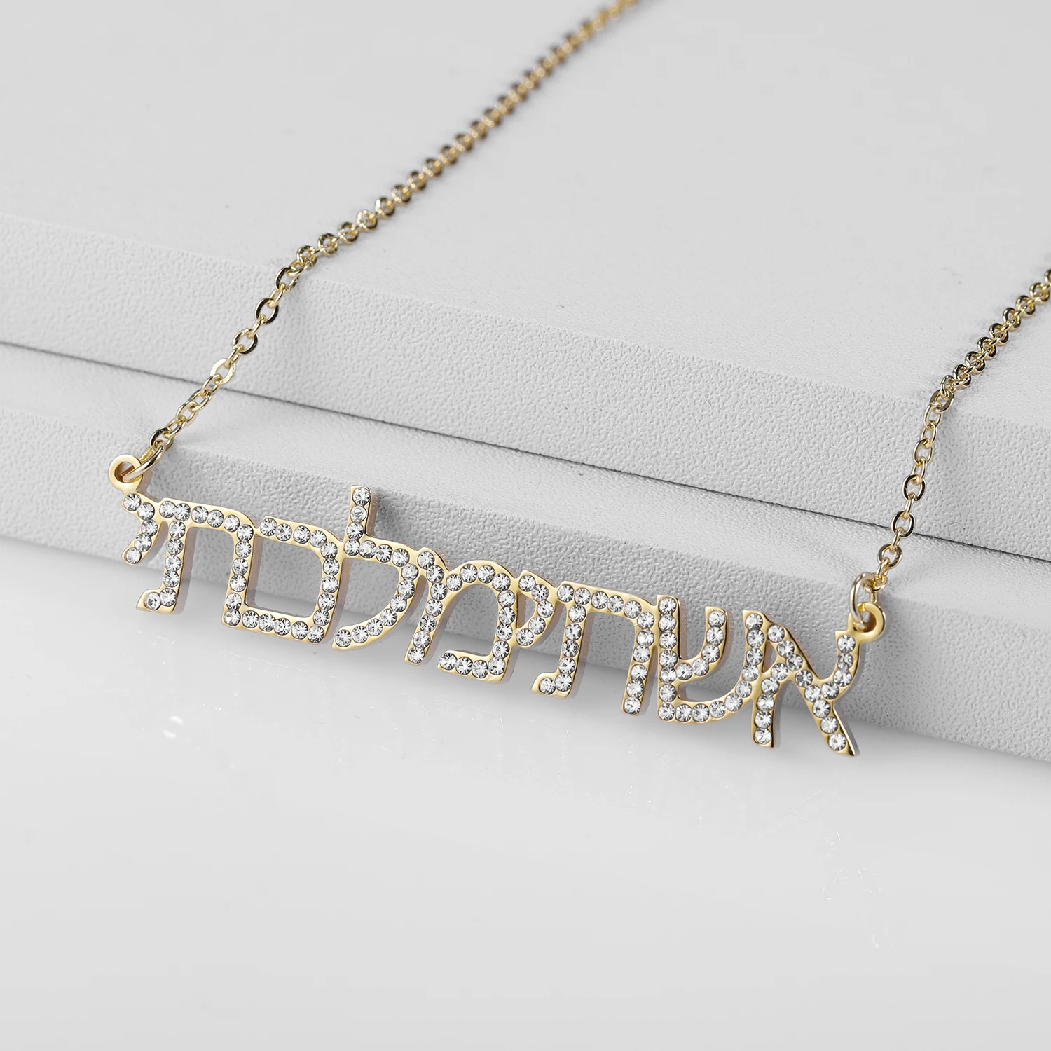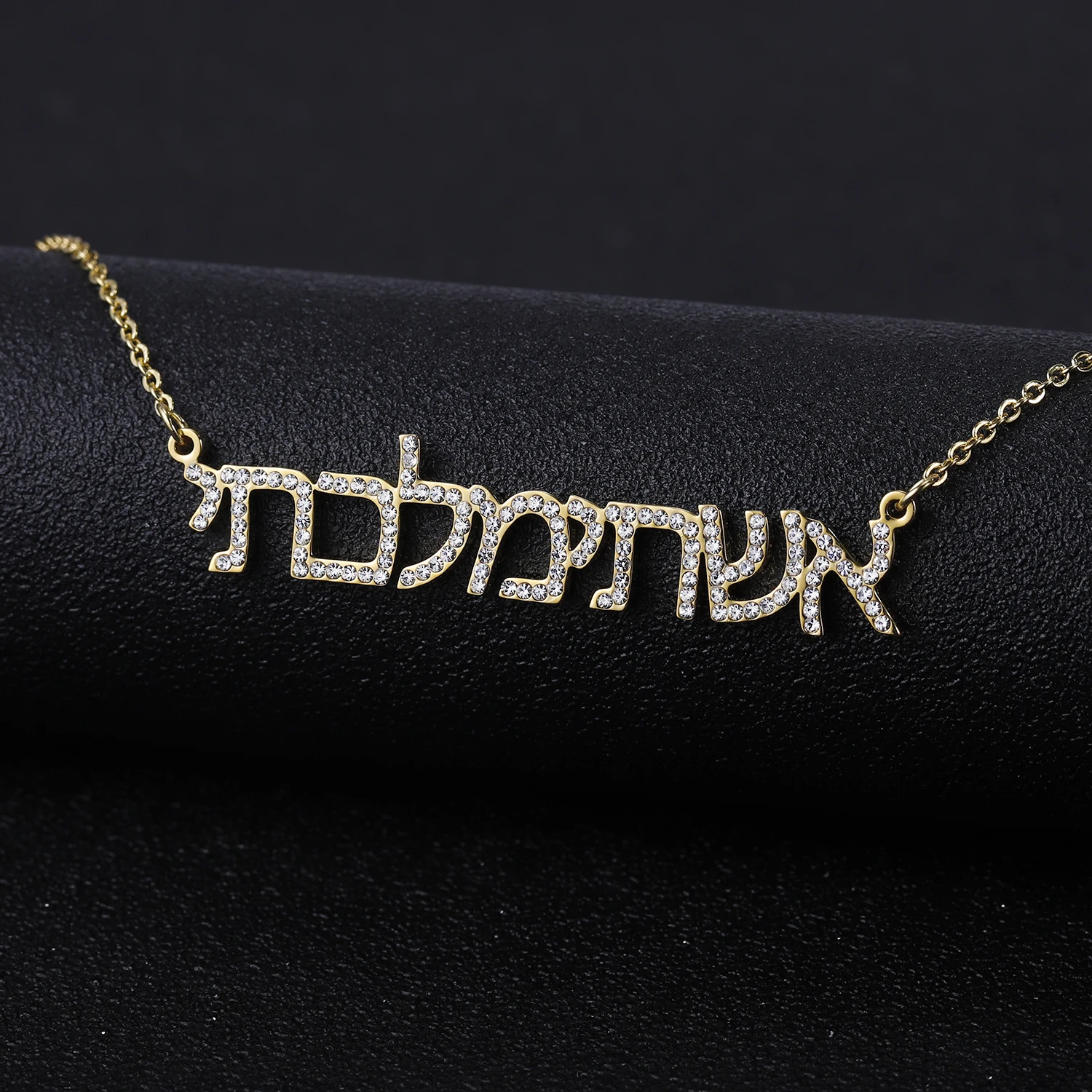 Ожерелье и подвески на заказ с изображением имени иврита, золотая цепочка на заказ, Женские Ювелирные изделия, сверкающие ожерелья-подвески с изображением инициала
