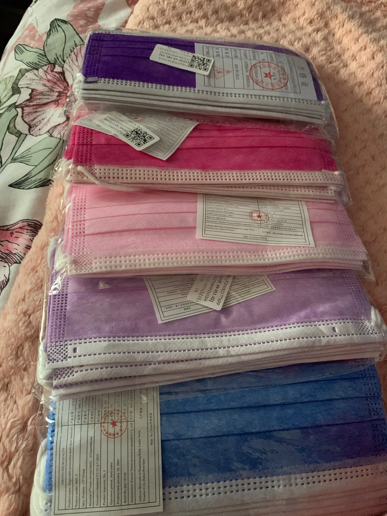 Jolis masques de bonne qualité, couleur pas très régulière mais joli bleu vif. Livraison rapide sous 3 semaines environ. Satisfaite.