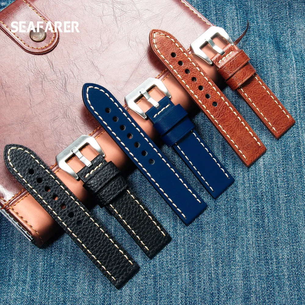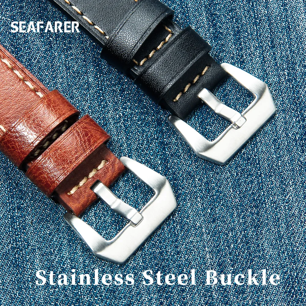 Ремешок для часов SEAFARER 22 мм 24 мм, винтажный браслет из воловь...