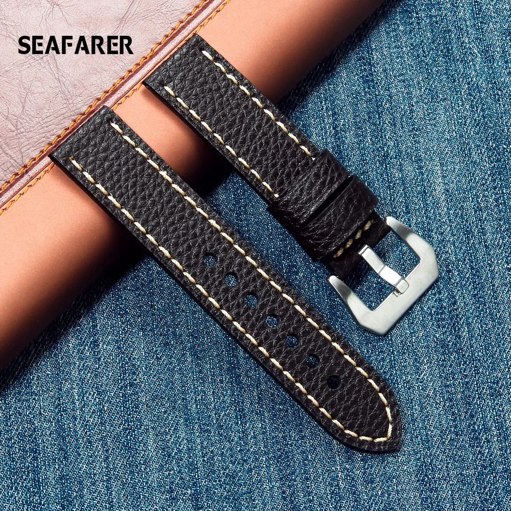 Ремешок для часов SEAFARER из натуральной кожи, черный браслет для ...