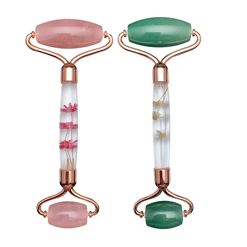 Розовый КВАРЦЕВЫЙ нефритовый валик и Gua Sha набор массажер для лица вечный цветок для лица гуашь скребок лифтинг натуральный камень уход за кожей