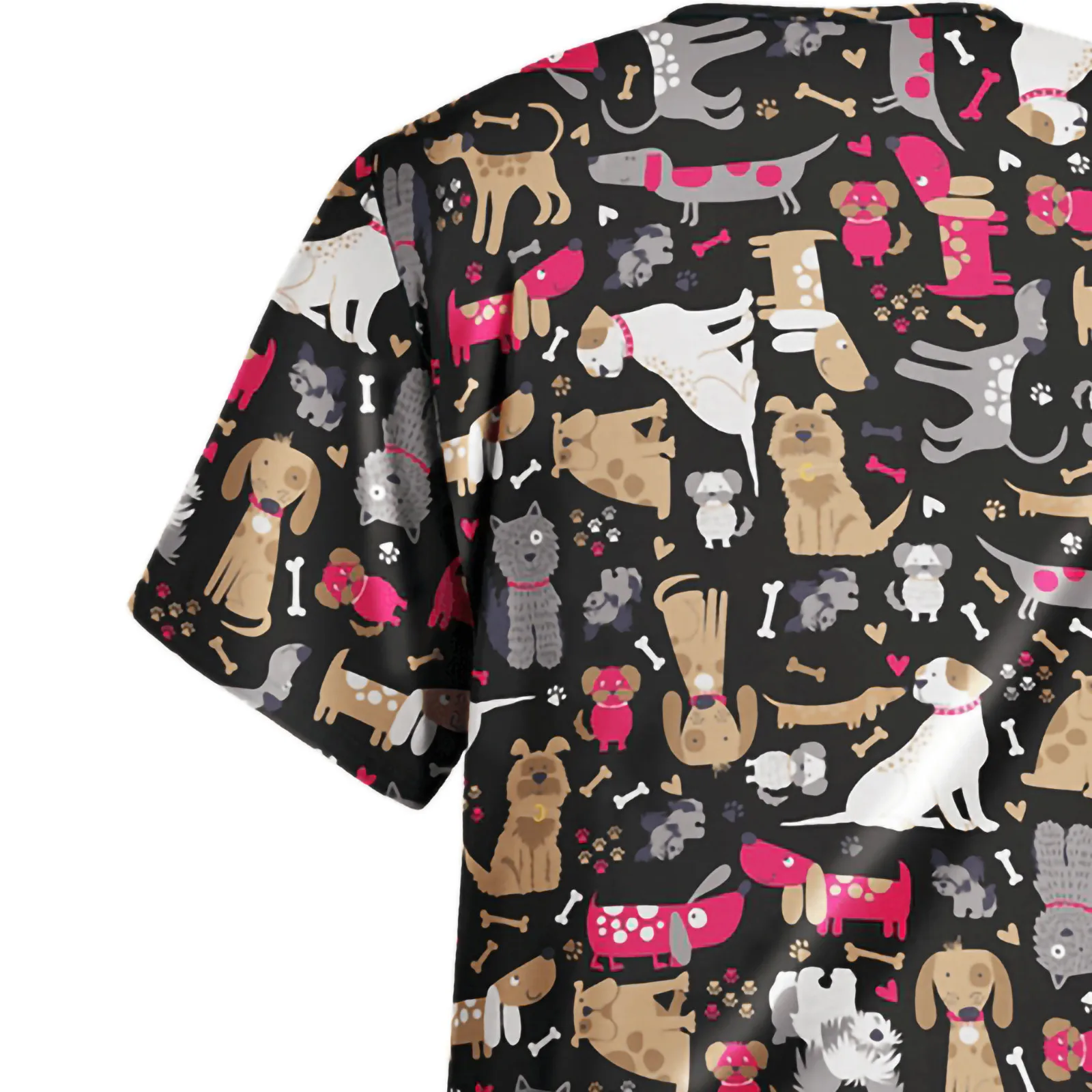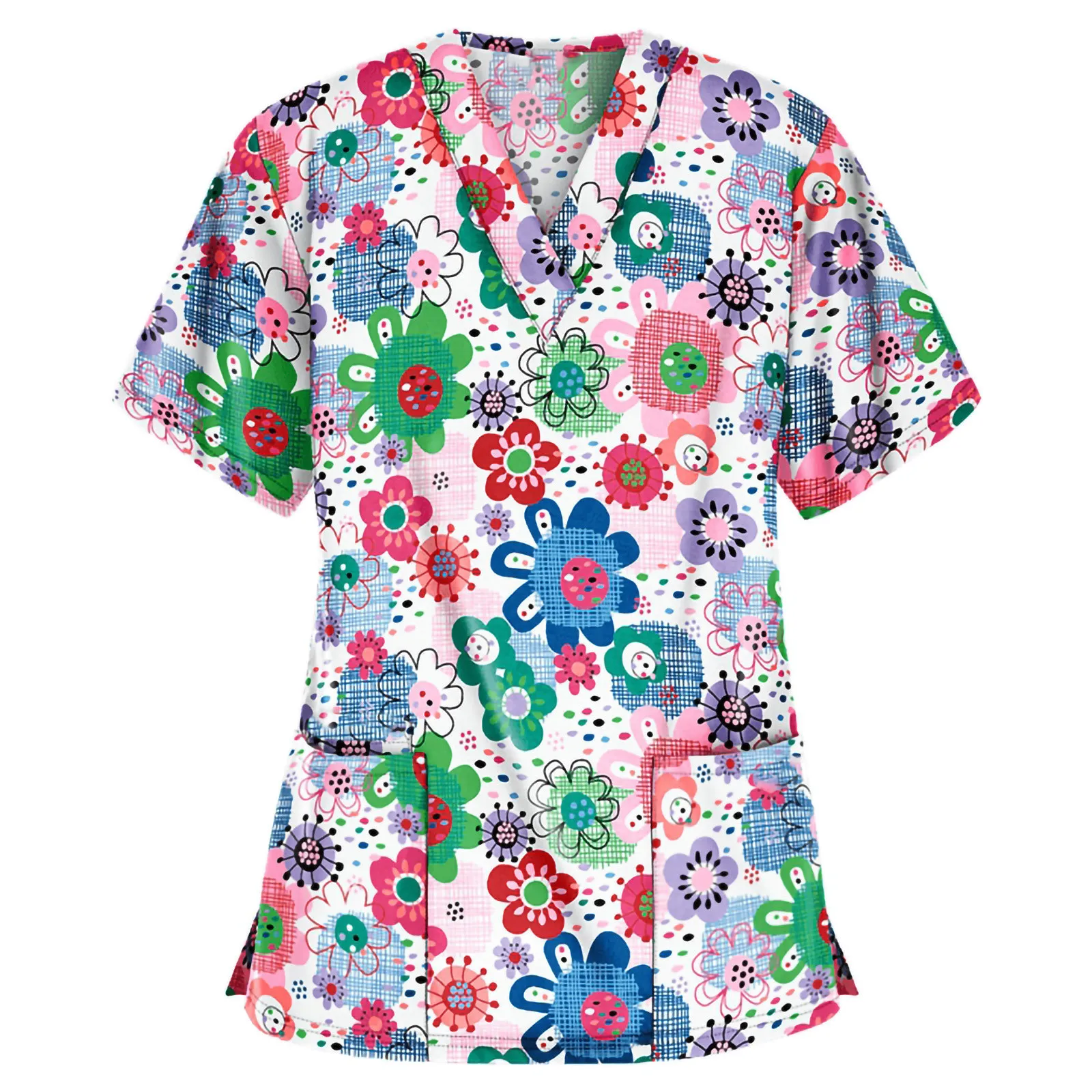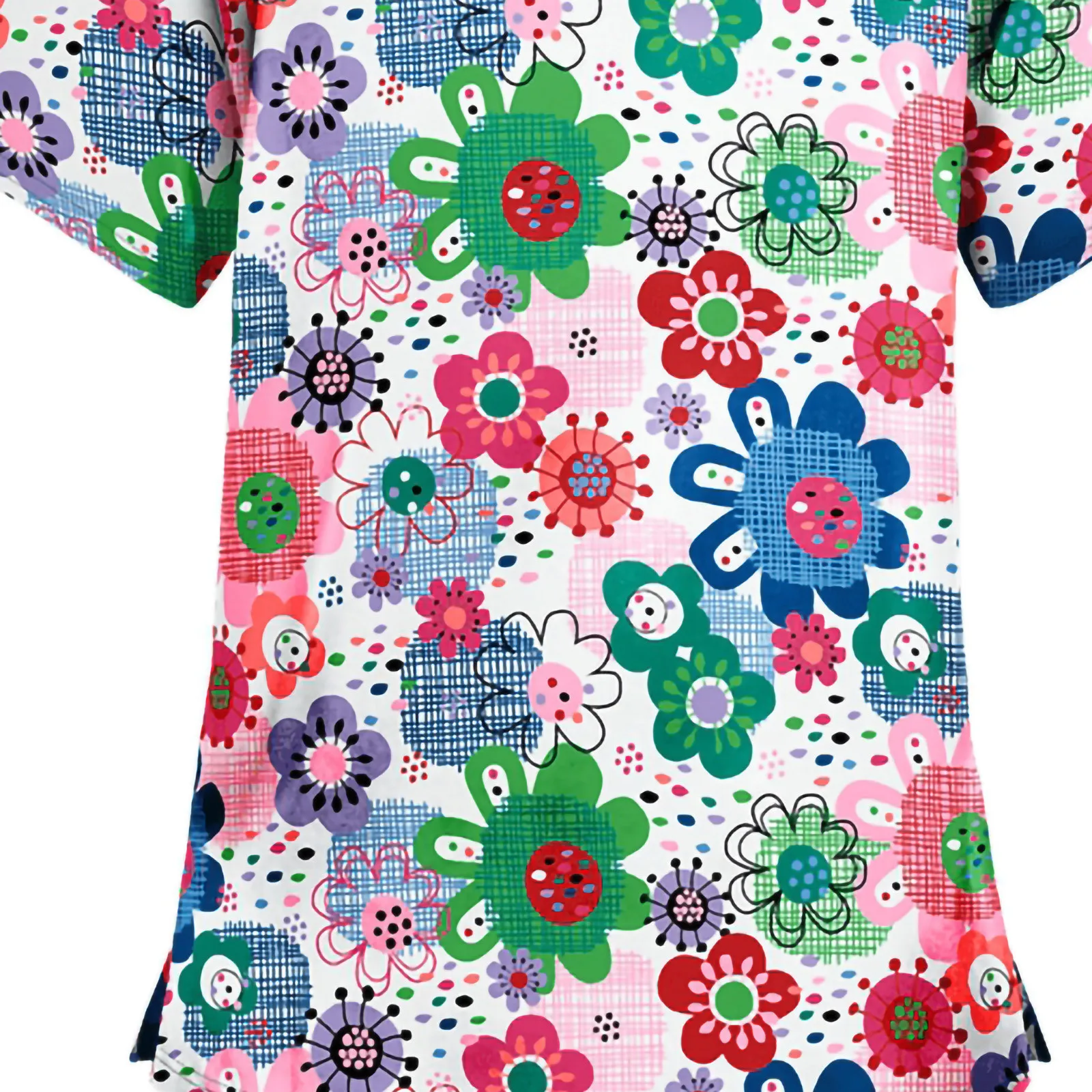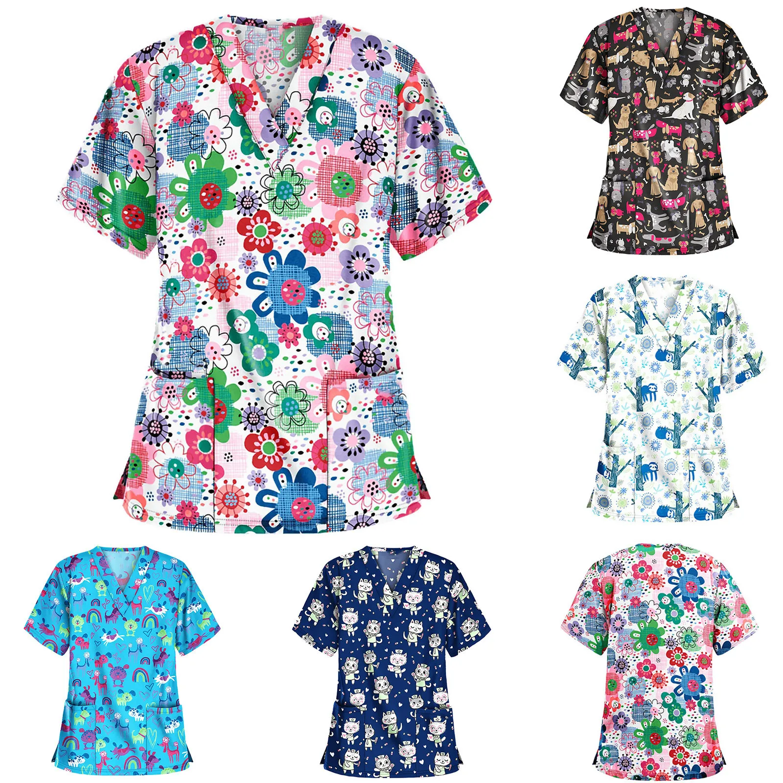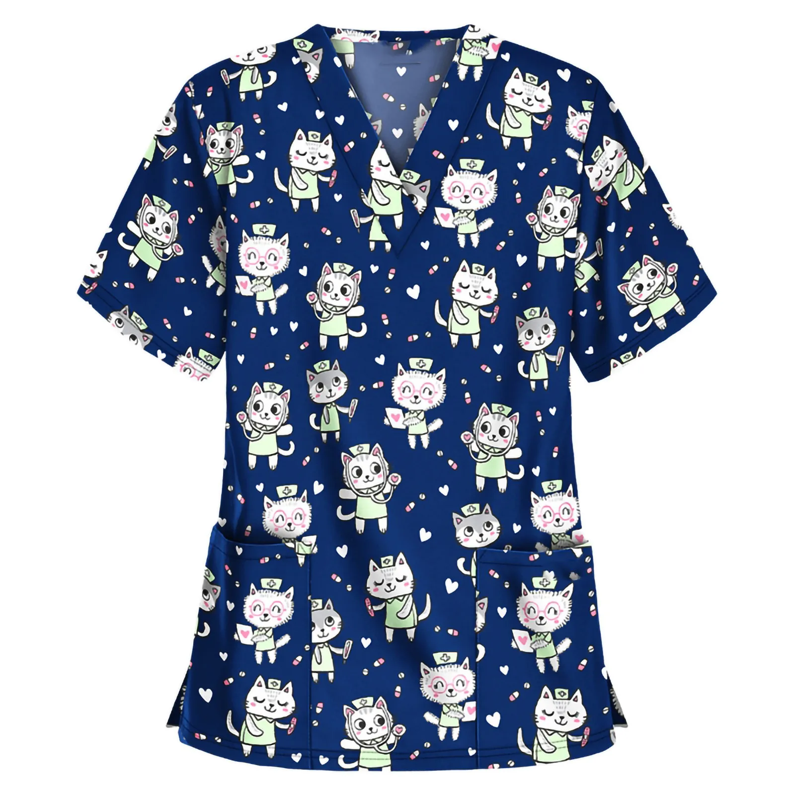 Женский комбинезон для медсестры с коротким рукавом и v-образным вырезом, Рабочая форма медсестры, блузка с мультяшным принтом, американский размер q5