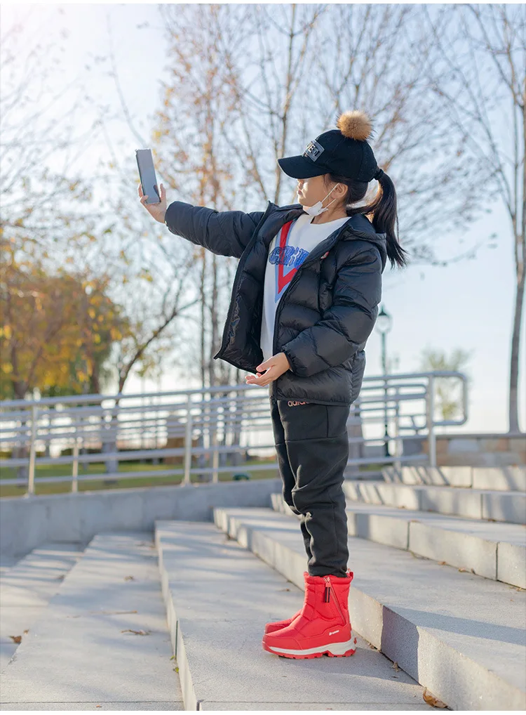 Детские зимние сапоги 2020 для маленьких мальчиков и девочек зимние ботинки на нескользящей подошве Водонепроницаемый теплые зимние ботинки дети младшего школьного возраста на застежке-молнии ветрозащитные ботинки