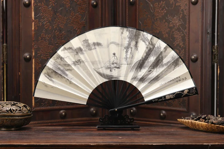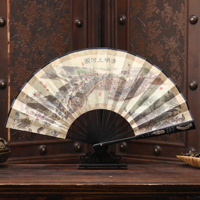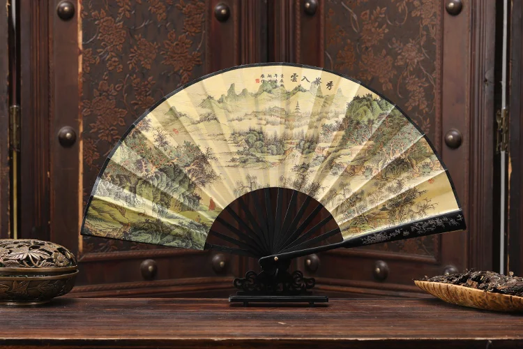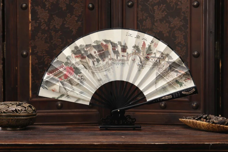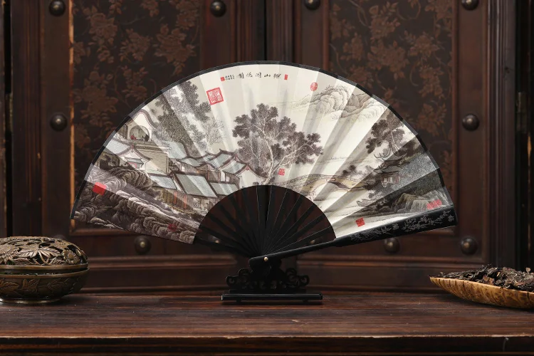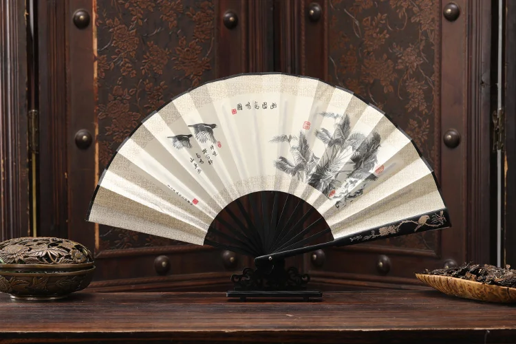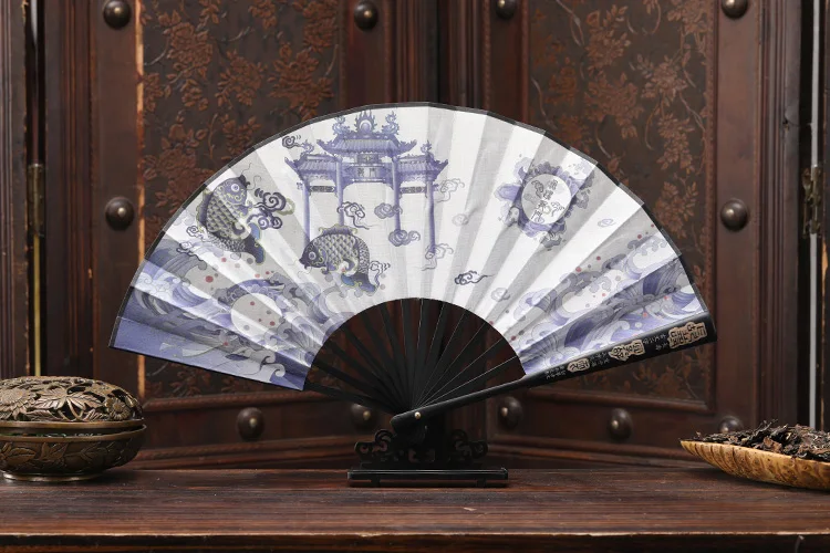 Китайский ретро ручной вентилятор 22,6 см мужскойМужской Шелковый Вентилятор Классический Портативный летний женский Складной вентилятор китайские мужские ручные вентиляторы