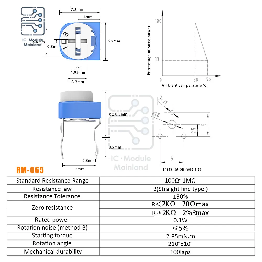 Резистор переменный RM065 100R 200R 500R 1K 2K 100K 3K 5K 10K 20K 50K 2,2 K 100K 1M Ohm RM-065, триммер, потенциометр, 500 шт.