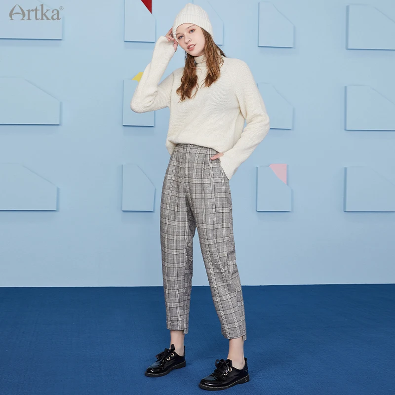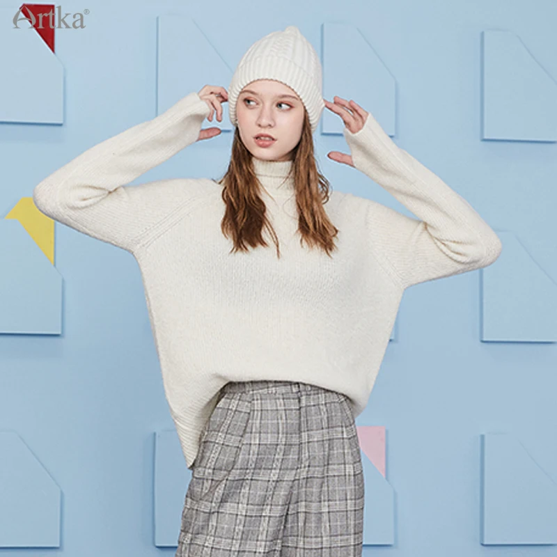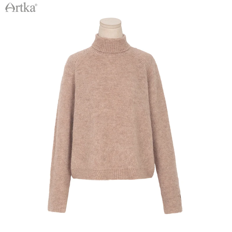 ARTKA 2020 Зима Новый женский свитер Элегантный 3 Цвета мягкий шерстяной вязаный свитер с высоким, плотно облегающим шею воротником; Просторные теплые Альпака трикотаж YB20802D