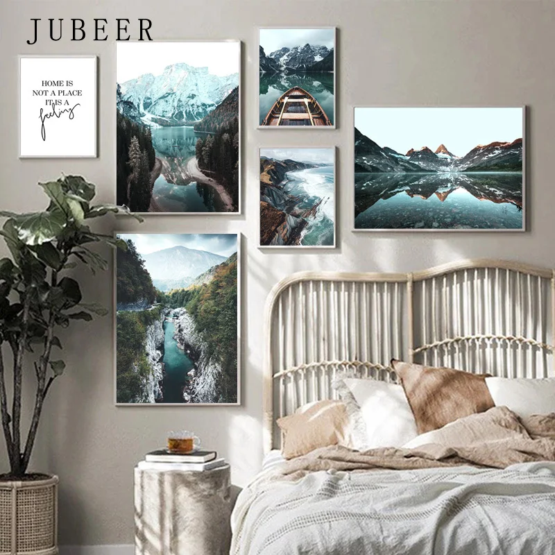 Северный стиль ЛЕС горный плакат с озером известная печать высокого качества на холстепейзажи природа пейзаж Искусство Живопись Настенная картина украшение дома