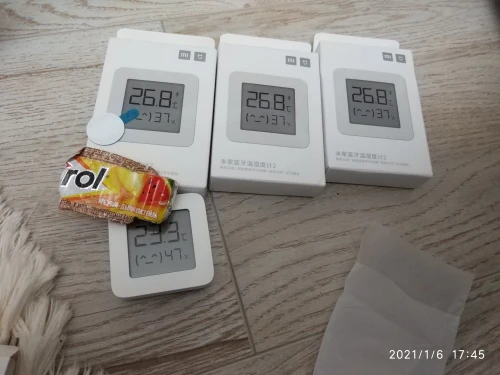 Хорошие аппаратики. Но маленькие. Примерно 4х4х1 см. Плохо, что Сяоми не приделало сзади магниты для крепления на металлические плоскости. Только вкладыш с круглым двусторонним скотчем. Mi Home ловит гигрометры сразу. Уже при открытии программы. Дальше всё идёт автоматически. Пришло за примерно месяц.