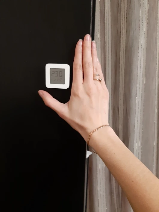 Термометр понравился. Маленький по размеру. В комплекте есть кружок двухстороннего скотча, для наклеивания термометра в нужном месте. С телефоном конектится по блютуз в приложении ми хоум. Покупкой очень доволен