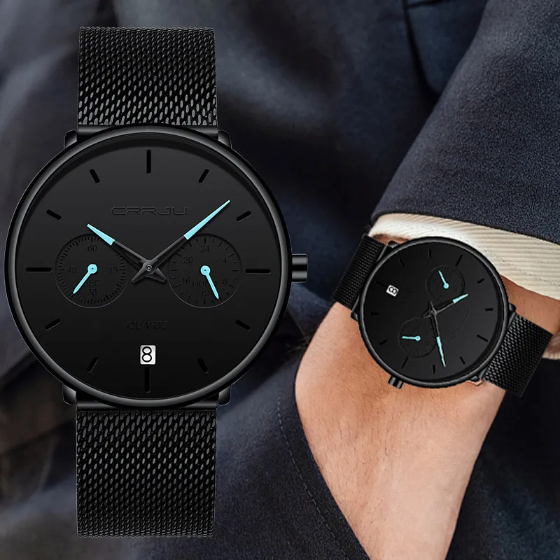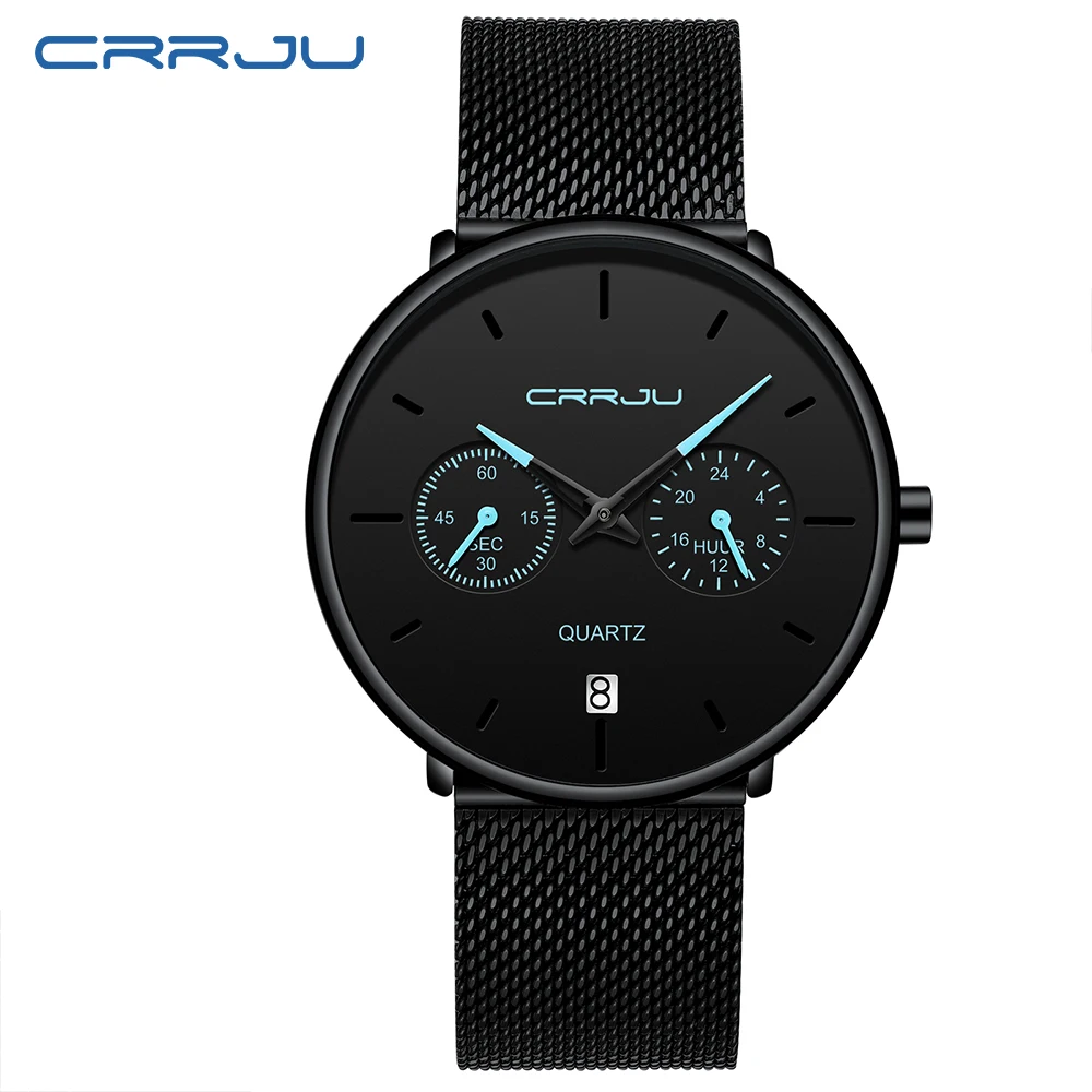 Мужские часы CRRJU, полностью стальные повседневные водонепроницаем...