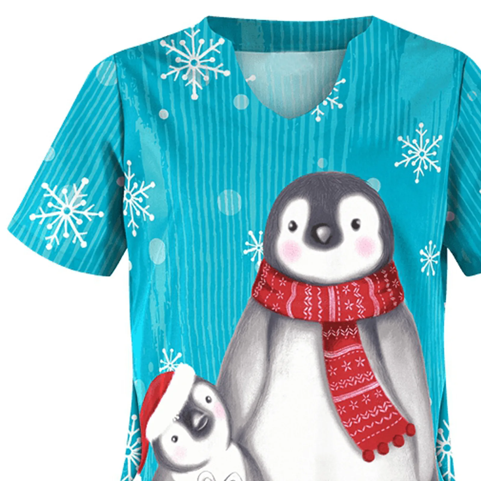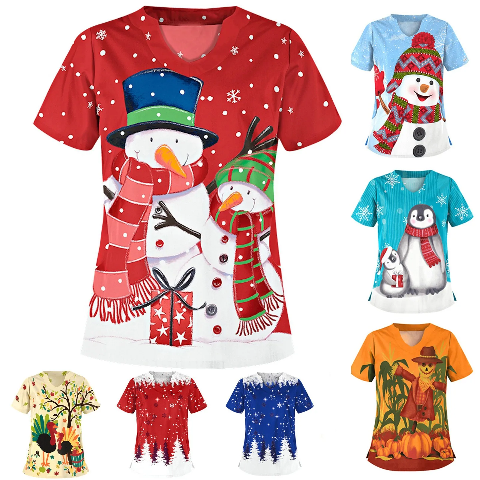 Комбинезон для медсестры, женский топ с коротким рукавом и v-образным вырезом, Рабочая форма, Рождественская блуза с надписями на тему Дня благодарения uniforme enfermera navidad q5