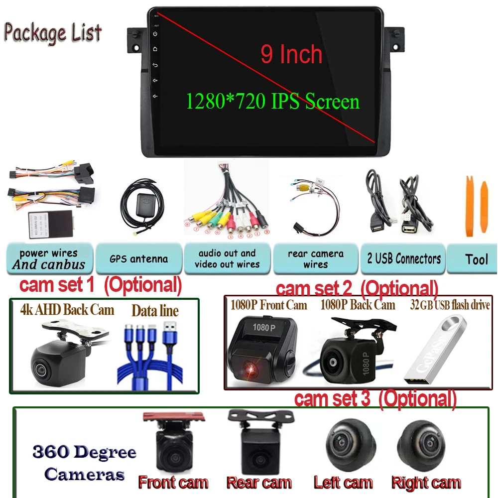 9 ''Android 11 для BMW E46M3318i320i325i330335 1998-2006 DSP android auto 360 камера 1280*720 IPS экран радио мультимедиа