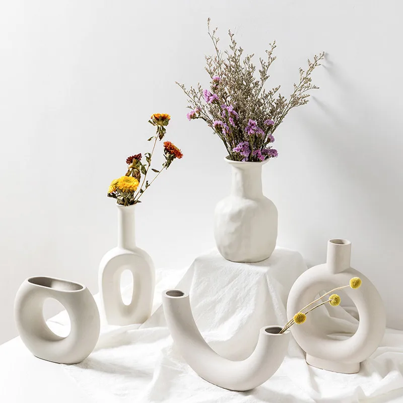 Керамическая ваза ins в скандинавском стиле, креативный контейнер для засушенных цветов в гостиную, домашние аксессуары, свадебное украшение для вазы