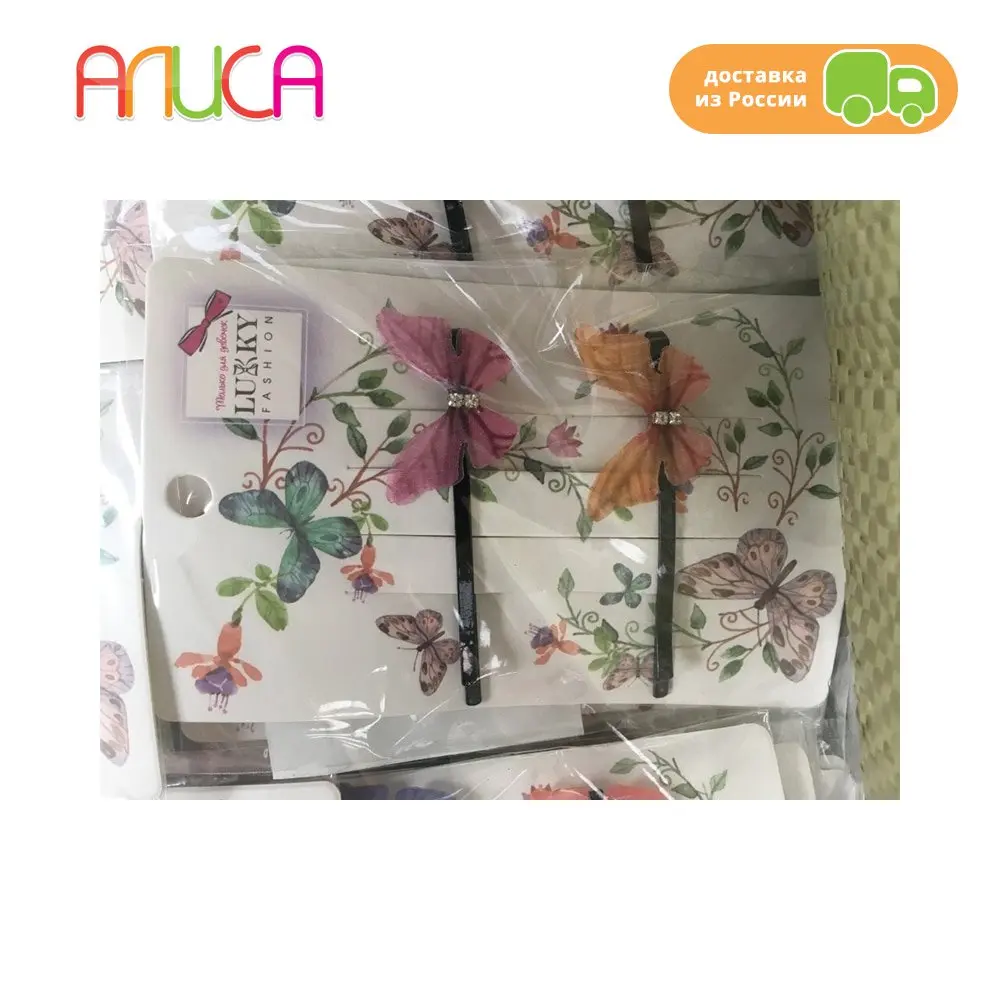 Набор заколок для волос Lukky Fashion невидимки, Бабочки со стразами, 2шт в наборе, цвета в ассортименте