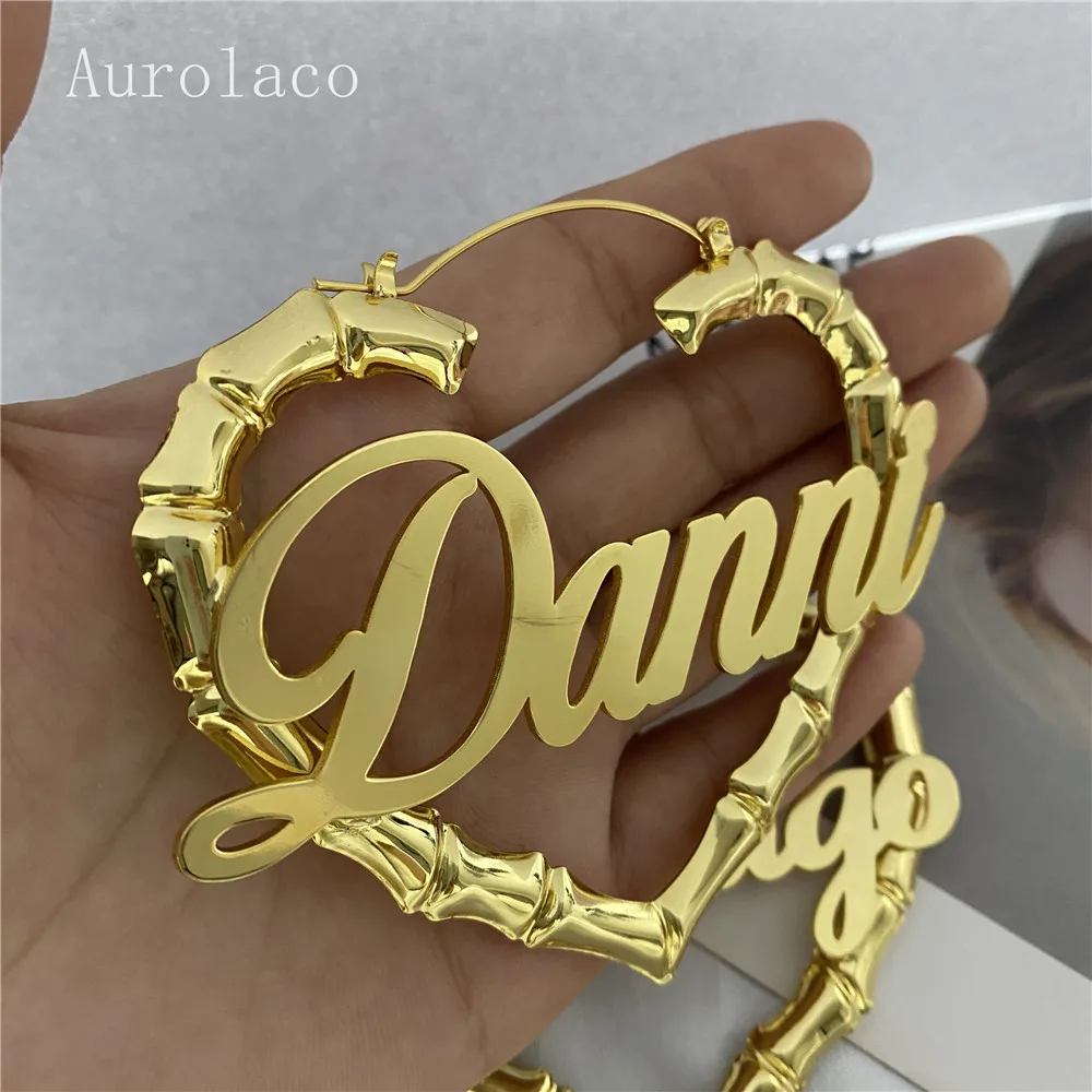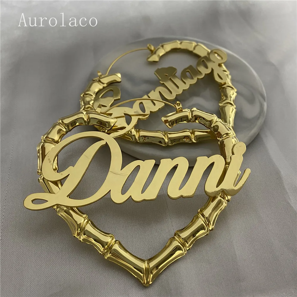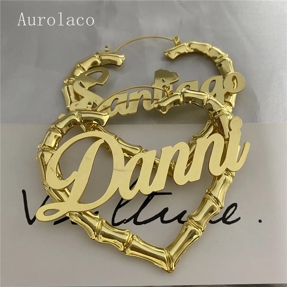 AurolaCo 80 мм пользовательские новые стильные Бамбуковые серьги из нержавеющей стали под заказ имя серьги под заказ хип-хоп Бамбуковые серьги для женщин подарок